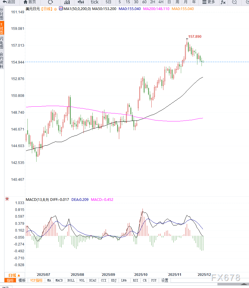 周五亚洲交易时段,日元对疲弱的经济数据反应有限,整体保持坚挺。尽管日本10月家庭支出录得近两年来最快降幅,但市场焦点仍集中在日本央行潜在的政策转向上。 ![]() 然而,日元却未受拖累。 财政刺激推升JGB收益率,利差收窄支撑日元 日本政府的新一轮刺激计划及增发国债,使日本国债收益率在过去一个月快速飙升。 10年期国债收益率升至2007年以来新高,20年期触及1999年以来水平,30年期收益率更创新纪录。 收益率大幅上行缩小了日本与其他主要经济体之间的利差,令套息交易面临撤退风险,从而支持日元升值。 “收益率飙升意味着日本借贷成本走高,也使市场对财政状况保持谨慎。”——市场分析人士 美元缺乏持续反弹动能,美联储降息预期压制汇价 美国方面,尽管最新就业数据超预期改善,但美元反弹力度有限。 裁员计划下降53%,初请失业金人数降至19.1万,为三年多最低。 但这些利好仍无法改变市场对美联储下周降息的普遍预期。市场认为美联储将在下周政策会议继续下调借贷成本,使美元无法获得持续买盘。 在此背景下,USD/JPY仍徘徊在接近三周低点的区域,过去两周的跌势可能继续延续。 市场等待关键PCE数据进一步确认政策方向 交易员普遍选择在最新PCE通胀数据出炉前保持观望,因为该指标将直接影响市场对美联储降息路径的预期,并决定美元下一步走势。 从技术结构来看,USD/JPY多次受阻于100小时均线(155.40附近),显示反弹动能不足。 同时,跌破155心理位后,空头力量进一步增强。 小时级指标持续处于负值区域,强化短线下行倾向。 若跌破154.50一带的前低,报价可能进一步加速下探至154.00整数关口。 反之,若汇价重新站上155.40并获得稳固支撑,将可能启动短线空头回补行情,向156关口与156.60压力带推进,最终挑战157整数位。 整体来看,汇价若持续维持在100小时均线下方,短线风险仍偏向进一步走弱。 ![]() 目前USD/JPY走势受“日本政策预期强化 + 日本收益率创多年新高 + 美联储降息预期抑制美元 + 技术面受压”四重因素共同影响。 日本央行潜在的政策转向已成为支撑日元的核心变量,而日本国债收益率的全面走高进一步加快利差收敛。若PCE数据温和,USD/JPY可能继续承压并进一步下探;若通胀意外走高,则美元有机会短线反弹。但整体趋势仍偏向日元在中期获得更多支撑。