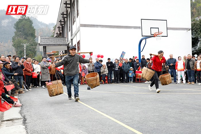 红网时刻新闻通讯员 冯建华 报道 12月3日,桑植县上河溪乡东风坪村新建成的村部篮球场热闹非凡,人声鼎沸、笑语欢腾。由市农业农村局主办,市农科教办、市农业农村局驻村工作队和东风坪村委会承办,市农民体育协会策划协办的2025年上河溪乡东风坪村“庆丰收”村民农耕农趣运动会在此火热开展。这场运动会不仅是农耕农趣技能的传承与竞技,更是凝聚民心、展示精神风貌、推动乡风文明建设的生动实践。 开幕式上,村民们自编自演的节目轮番上演,展现出浓郁的地方文化特色。广场舞《歌唱祖国》活力四射,二胡合奏《马桑树儿搭灯台》音韵悠扬,土家打镏子节奏明快,地方阳戏韵味十足,还有邻居永顺县猛必社区带来的《欢聚一堂鼓舞》。
