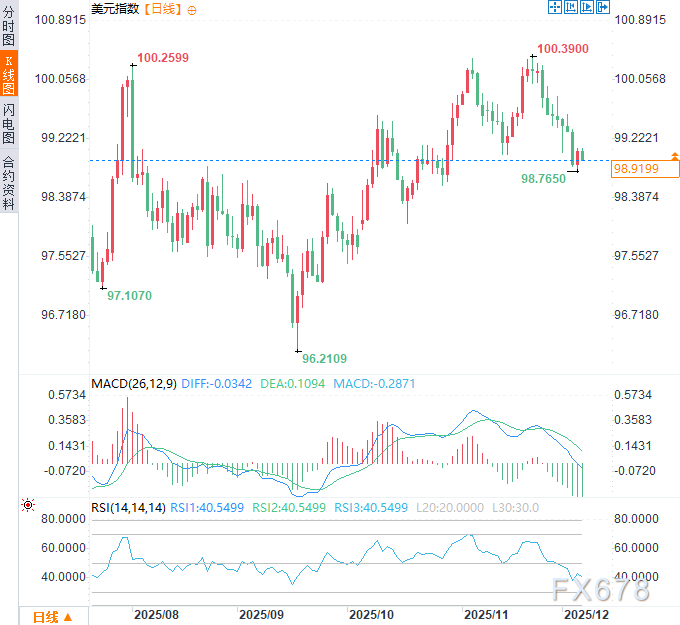 尽管股市可能已重返历史高位附近,但通胀持续高企与就业市场疲软引发的焦虑令投资者如坐针毡。北京时间周五(12月5日)23:00将发布的通胀报告可能成为检验市场近期乐观情绪的现实标尺。 ![]() 这就是为何周五发布的9月份美联储首选通胀指标——个人消费支出价格指数报告对投资者而言至关重要。市场期待这份迟来的PCE报告能提供基于硬数据的现实检验,要么印证当前低迷的经济情绪,要么再次证明市场感知与实际情况存在偏差。 全美保险公司首席市场策略师马克·哈克特表示:“投资者现在更关注(周五的PCE数据),因为软数据的准确性一直欠佳。现有数据存在滞后或不完整的混乱状况,PCE数据恰好能填补空白——我们需要指引方向,而依赖某些软数据指标已给投资者带来诸多问题。” 关于美国经济的实际健康状况,投资者始终面对大量矛盾信号。一方面,ADP私营部门就业报告和消费者信心调查等劳动力市场及调查数据显示衰退风险不容忽视——招聘速度放缓,求职者持续增加。但另一方面,达乐公司和梅西百货等企业的季度财报凸显出消费者支出依然强劲。 黑色星期五期间消费者在线下和线上渠道豪掷数十亿美元,这至少暂时反驳了价格上行压力与劳动力市场疲软将抑制消费的说法。 哈克特在电话采访中对MarketWatch表示,这种数据分化使得周五的PCE报告以及最新的个人支出和个人收入数据变得“极其重要”,尤其是在当前空头正宣扬消费者已陷入困境的市场氛围中。 他补充道,任何显示消费者依然坚挺的证据都可能进一步推动年底的股市上涨行情。 《华尔街日报》调查的经济学家预计,9月份整体PCE将环比上升0.3%,而备受关注的核心PCE将小幅上升0.2%。同比数据方面,预计整体PCE将维持在2.9%不变,核心通胀率可能同比增长2.8%。 通胀监测 尽管美联储官员担忧通胀可能持续高于2%的目标,但市场仍预计他们下周将降息以提振疲软的就业市场。根据芝加哥商品交易所美联储观察工具的数据,预计美联储下周三有87%的可能性将降息25个基点。 法巴财富管理投资组合策略主管杰克·亚纳谢维奇表示,政策制定者更可能“忽略”滞后的通胀指标,因为过度依赖这些数据可能导致行动滞后。他补充说,与此同时,经济放缓——特别是如果失业率更快上升——比通胀加速构成更大风险。 亚纳谢维奇表示,通胀将保持“某种程度的粘性”,但不会大幅双向波动,因为劳动力市场的持续放缓可能导致消费减少。亚纳谢维奇周四在采访中表示:“由于劳动力市场降温,通胀推拉的需求端因素开始略有缓解,需求压力随之减轻。我们对通胀降温仍持相对乐观态度,通胀的风险可能在于其持续粘性,而非必然逐步攀升。” 即将发布的PCE报告是引爆短期行情的导火索,但其背后的深层逻辑——美联储在顽固通胀与初显疲态的就业市场间的艰难抉择——才是决定美元中期命运的关键。 在“滞胀”阴影与“预防性降息”可能性的交织下,美元很可能告别单边强势或弱势,进入一个高波动、以区间震荡为主的新阶段。周五美元指数于98.95附近震荡,前一交易日一度触及近五周低点98.77。 ![]() 北京时间13:57,美元指数现报98.92。