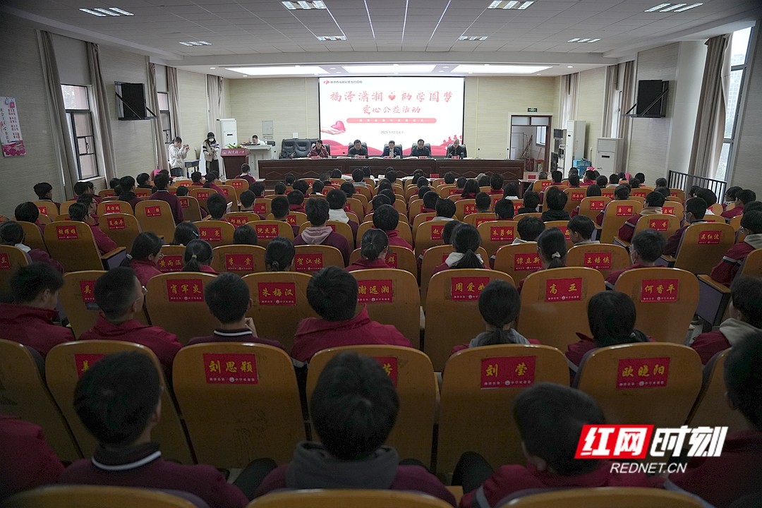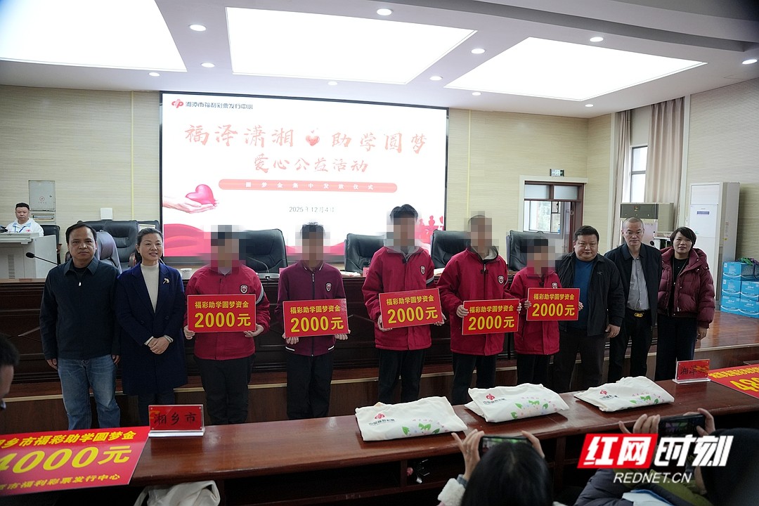活动现场。 红网时刻新闻12月4日湘潭讯(记者 楚湟 通讯员 张凤姣)12月4日,“福泽潇湘·助学圆梦”圆梦金集中发放暨福彩宣讲进校园活动在湘潭县一中举行。本次活动共向90名困难学生与5名困难教师发放“圆梦金”19万元,以实际行动为师生送去温暖与支持。