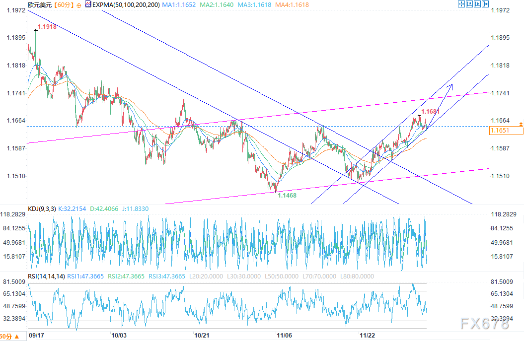0周五(12月5日)欧盘时段,日内走势上,欧元/美元先震荡上行,触及1.1671的日内高点后动能衰减,随后逐步回落,当前价格回落至1.1643附近,基本回到日内开盘价水平,短期呈现“冲高遇阻回调”的节奏。 周五 ...