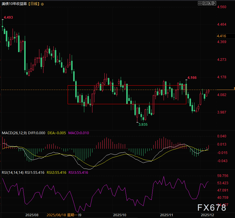周五(12月5日),近两日美债市场迎来短期反转:国债遭遇抛售推动收益率终结两日连跌,核心就业数据呈现分化特征——感恩节当周初请失业金人数意外下滑以及挑战者裁员书大规模下降,与前一日ADP报告显示的11月就业岗位收缩形成博弈,印证美国劳动力市场未出现大规模招聘或裁员的明确趋势。 ![]() 日本10年期国债收益率近期快速上涨,缩小了美日10年期国债利差,日债的相对回报优势显现,吸引力显著提升,而日本作为全球最大的美债持有方,在利差收窄、日债配置价值凸显的背景下,资金开始考虑卖出美债回流日本国债,进而引发部分美债遭到抛售,推动美债收益率走高即美债收益率被迫跟涨 同时美债收益率上行对美元形成短期支撑美元指数也受到小幅提振。 ![]() 就业数据分化:初请骤降成收益率上行直接推手 美债收益率与美元指数同步走高的核心驱动,源于周度初请失业金人数的超预期回落。数据显示,该数值从向上修正后的21.8万人骤降至19.1万人,不仅大幅低于《华尔街日报》调查中经济学家预测的22万人,更创下2022年9月以来的最低水平,反映美国当前裁员压力显著缓解,同时挑战者企业裁员数也超预期下降,值得注意的是9月的挑战者数据是同比下降的,刚好对应了2月后初领失业金人数的减少。 不过这一强劲数据并未完全扭转市场对劳动力市场走软的整体判断。 此前周三公布的ADP报告已披露,11月私人部门就业人数减少3.2万人,叠加ISM11月非制造业PMI意外攀升至52.6、标普全球PMI终值下修至54.1的分化表现,导致周三美债收益率曾集体走低:10年期收益率下跌3个基点至4.06%,2年期下行3个基点至3.48%,30年期收益率微跌2个基点至4.73%。 数据博弈下,周四开盘前美债收益率已提前预热。10年期收益率上涨2个基点至4.08%,对货币政策更敏感的2年期收益率同步上行2个基点至3.50%,30年期收益率维持4.73%不变;截至午后,10年期收益率进一步上行至4.107%,2年期升至3.530%,但两者仍未突破近三个月的震荡区间。 延迟公布指标成关键变量 尽管短期就业数据支撑收益率上行,但市场对美联储下周降息的定价并未松动,核心原因在于劳动力市场的边际走软趋势仍未逆转。 截至11月29日当周初请失业金人数预计增至22万人,高于前一周的21.6万人,续请失业金人数预计稳定在196万人,暗示就业市场宽松压力仍在累积。 另一关键变量来自延迟发布的通胀数据,因政府停摆推迟的9月核心PCE通胀数据,定于周五晚上23点与密歇根大学消费者信心指数同步公布,这一美联储重点关注的通胀指标,将直接影响降息预期的强度。 此外,9月工厂订单预计环比增长0.3%,增速较上月1.4%明显放缓,也为经济弱复苏背景下的宽松预期提供支撑。 当前利率期货市场仍在持续定价下周美联储降息概率,这种预期与短期强劲就业数据的博弈,使得美债收益率难以突破区间束缚。 美元指数也呈现类似走势,在初请数据公布前一度承压下行,随后震荡持平,反映市场对政策与数据的双重观望态度。 供给与央行动态:潜在变量影响市场流动性 除数据与政策预期外,国债供给与央行动态也在影响美债市场情绪。 国债拍卖方面,美国财政部计划发行900亿美元四周期国库券与800亿美元八周期国库券,短期供给压力或对收益率形成小幅支撑。 央行动态上,美联储负责监管事务的副主席米歇尔?鲍曼定于当日发表公开讲话,其对经济、通胀及货币政策的表态,可能为市场传递关键政策线索,进而影响美债收益率的短期波动方向。 市政债券市场的变化也间接反映整体债市供给环境。 周三30天可见市政债券供应增加10.77亿美元至197.3亿美元,显著高于12个月均值139.17亿美元,显示债市整体供应压力有所上升,或对美债市场流动性形成边际影响。. 总结:美债收益率长期仍然趋于下行,美元指数走势亦然。 整体来看,美债收益率短期受强劲初请数据推动回升,但长期仍受美联储降息预期与经济弱复苏背景的牵制,震荡下行格局难有根本改变。 同时美联储无论是长期将名义利率向中性利率靠拢,还是通过退出QT(甚至重启购债操作)买入国债,通过这两类政策调节均可压低国债收益率、降低市场融资成本。只有当美国名义GDP增速持续超过10年期国债收益率时,其高企的政府债务才有望通过自身经济增长逐步消化,进而减少市场对美国依赖货币宽松、滥发美元的担忧,这也是从根本上避免美元霸权逐步弱化的关键前提。 ![]()