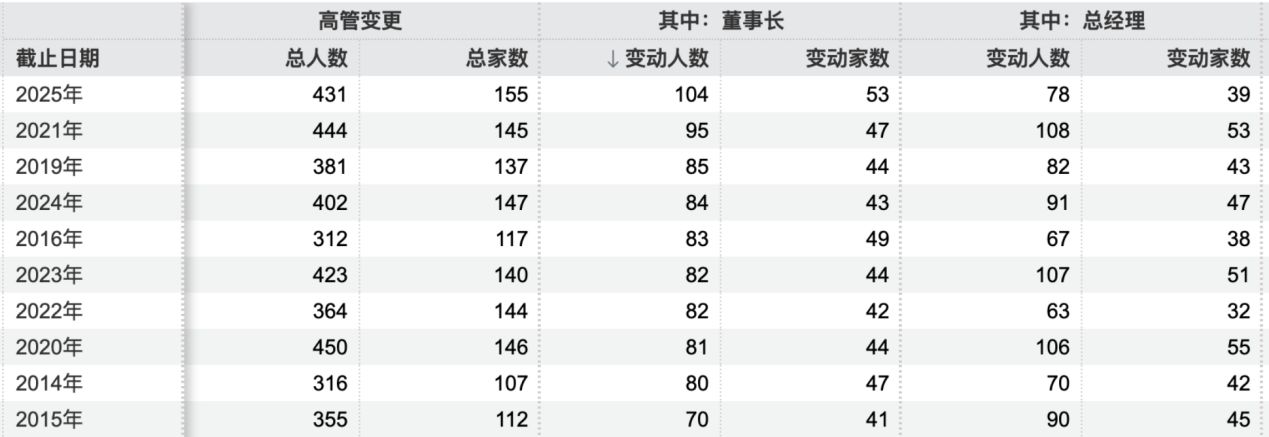 履历显示,何琨曾任云南财经大学教师,中国证监会派出机构工作人员。后进入金融行业,曾担任宝盈资管副总经理,深创投红土资管董事、总经理。现任深创投红土资产管理(深圳)有限公司和红土创新基金的董事长、法定代表人。 据悉,红土创新基金成立于2014年6月,是国内首家创投系公募基金,由深创投集团100%出资设立。成立多年来,红土创新基金的发展不温不火,近两年管理规模一直在150亿~200亿元徘徊。 不过今年该公司旗下多只主动权益类基金表现不俗,其中红土创新新兴产业A以126.45%的年内收益排在全市场灵活配置基金第一;红土创新新科技A、红土创新转型精选等产品的年内回报也超过80%,均排在同类产品的前2%。截至12月4日,红土创新基金24只产品仅1只年内净值增长率为负。 值得一提的是,这些业绩排名靠前的主动权益产品规模都不大。截至今年三季度末,该公司规模最大的红土创新新兴产业基金也仅有5.32亿元,还有多只产品规模不足1亿元。 公募基金董事长变更人数创纪录今年以来,公募行业高管变更一直保持在比较高的频率。 根据Wind数据,今年以来公募高管变更人数达到431人,在近10年的变更人数中排在第三。考虑到年底往往是高管变更的高峰期,这个数字很有可能继续增加。 值得一提的是,今年以来董事长变更人数达到104人,创下了公募基金有史以来的新纪录。排在第二和第三的分别是2021年的95人和2019年的85人。 与此同时,今年变更的总经理人数也达到78人,这一数字同样可以排进公募行业历史的前十位。