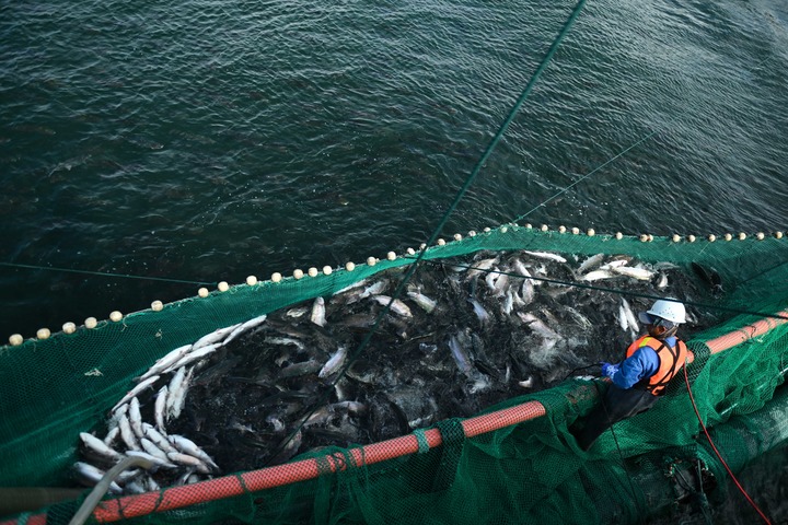 图为龙洋知鲜公司员工给冷水鱼降温。 新华社记者张龙 摄 51岁的冯庭贵住在青海省海南藏族自治州共和县龙羊峡镇,是龙洋知鲜(青海)股份有限公司捕捞队队长。“传统吊网捕捞会让虹鳟鱼产生更多肌酸,让虹鳟鱼的口感大打折扣。我们现在用吸鱼泵连鱼带水直接送入车间,保证了鱼的肉质鲜嫩。”冯庭贵说。 龙洋知鲜(青海)股份有限公司依托龙羊峡独特的生态资源,坚持环境友好型养殖方式与标准化、规模化、数智化、品牌化、国际化运营模式,成为我国有影响力的冷水鱼养殖企业之一。 除了供应国内市场,龙羊峡三文鱼还通过冷链物流远销新加坡、泰国等十多个国家。龙洋知鲜公司品牌部总监沃日晗介绍,今年1至8月,龙羊峡三文鱼出口额占全国三文鱼出口额的98.8%。 党的二十届四中全会审议通过的《中共中央关于制定国民经济和社会发展第十五个五年规划的建议》提出,坚持农林牧渔并举,发展现代设施农业,构建多元化食物供给体系。 “我们将贯彻落实好四中全会精神,继续利用地理优势发展冷水鱼养殖等产业,加快实现‘以水养鱼、以水净鱼、以水保鱼'的生态目标,把冷水鱼养殖打造为优势产业,惠及更多群众。”循化县查汗都斯乡党委书记韩继诚说。 |