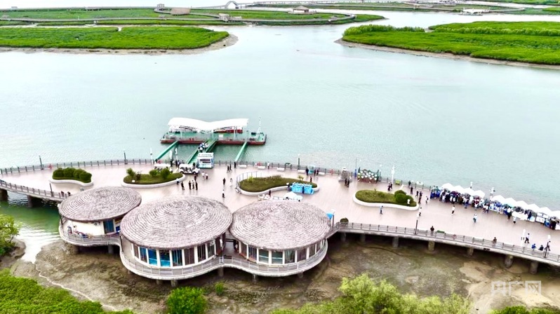 航拍下的红树林公园(央广网记者 吴馨骅 摄) 生态修复也带来了经济效益。据厦门产权交易中心公布的数据,截至2025年10月,厦门蓝碳交易量累计已达21万吨,约占全国市场的八成。作为高效的“固碳高手”,下潭85公顷的红树林,正是厦门宝贵的“碳库”之一。2023年,这里作为海岸带生态减灾协同增效国际典型案例走向世界。 滩涂之中,一片生机盎然的红树林悄然成长,厦门市民也享受到丰厚的“生态红利”。如今的下潭尾红树林公园,成为市民休闲的网红打卡点和厦门海洋科普教育基地,据统计,公园年接待量已突破200万人次,单日最高客流4.6万人次。