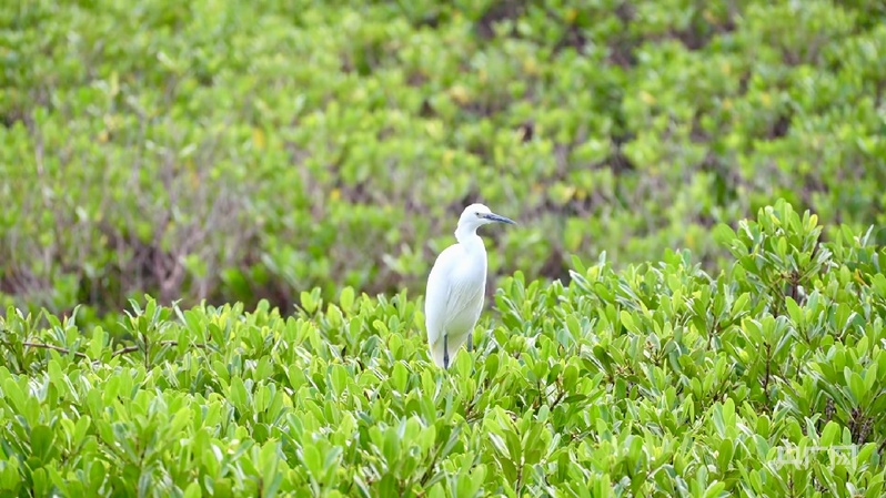 栖息在林间的白鹭(央广网记者 吴馨骅 摄) 20世纪90年代以来,厦门市开展红树林保护和恢复种植工作。2005年,厦门市政府委托厦门大学红树林科研团队,成功培育种植了约5公顷实验林,这为红树林的大规模修复奠定了基础。2010年起,厦门市开启了红树林生态修复工程,第一期通过退养清滩、水道清淤、围堰造滩等措施,修复红树林44公顷;二期新增种植红树林36公顷,主要包括白骨壤、桐花树、秋茄、木榄、红海榄等树种。 如今,下潭尾是福建省最大的人工重构红树林生态公园,总面积达404公顷,其中红树林面积约85公顷。园区设计也处处体现生态理念:步行栈道选用接近滩涂的土灰色,减少对生物的视觉干扰;建筑屋顶采用仿生设计;还有利用废弃光盘制作的鱼形装置,向公众传递可持续发展理念。