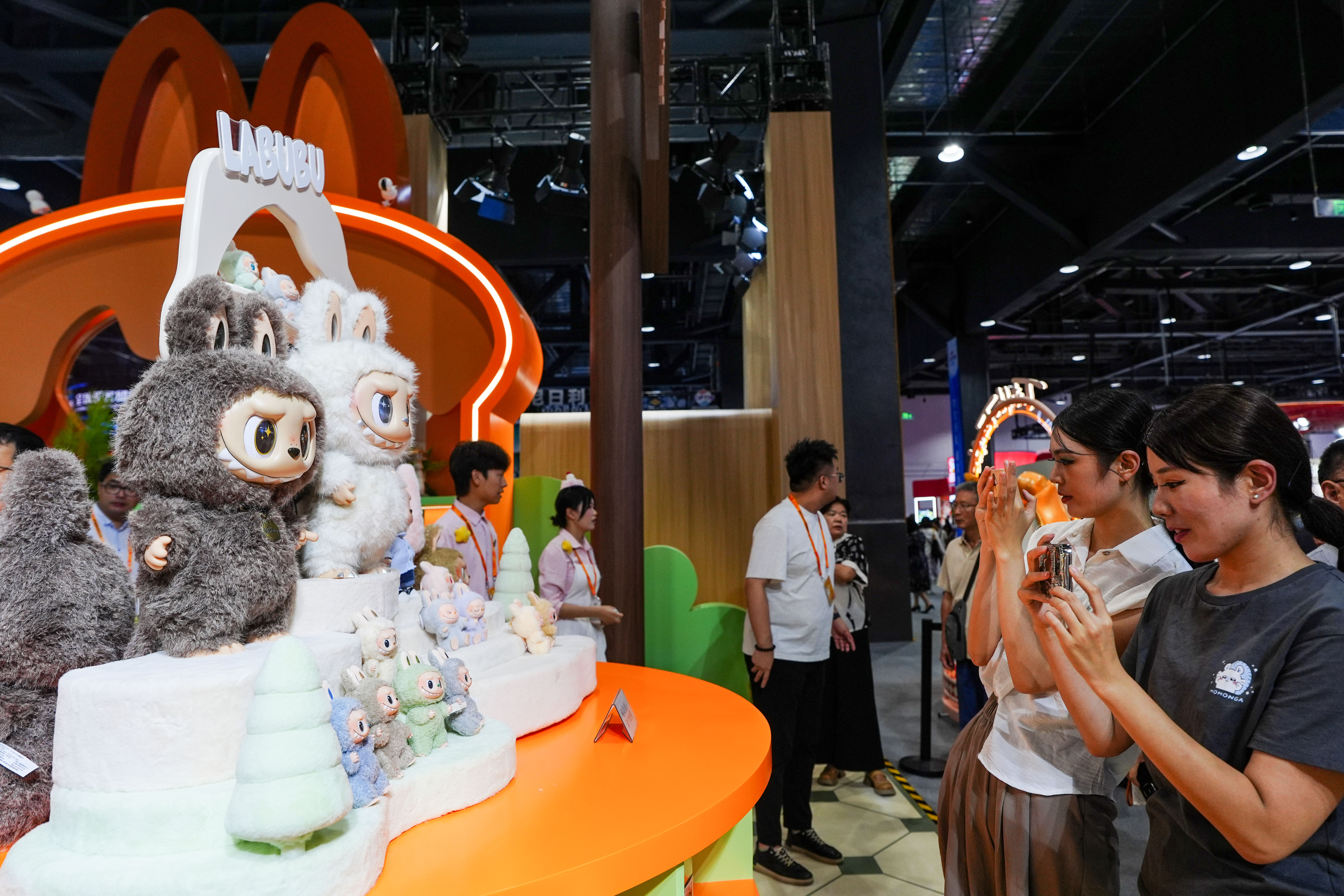 2025年9月12日,在2025服贸会泡泡玛特展位,参观者拍摄LABUBU玩偶。新华社记者 陈晔华 摄 放眼全国,供给侧的持续创新,正在激发广阔的消费新需求:LABUBU风靡全球,“跟着演出、赛事去旅行”掀起热潮,“苏超”火爆出圈,露天音乐会人气火热…… 前10个月,服务零售额同比增长5.3%,网上零售额同比增长9.6%,高能效等级家电、新能源汽车零售额均保持较快增长,智能家电、智能家居等产品需求不断扩大。 以消费升级引领产业升级,中国大市场提质扩容—— 人形机器人——这是今年世界观察中国产业发展的一个关键词。
