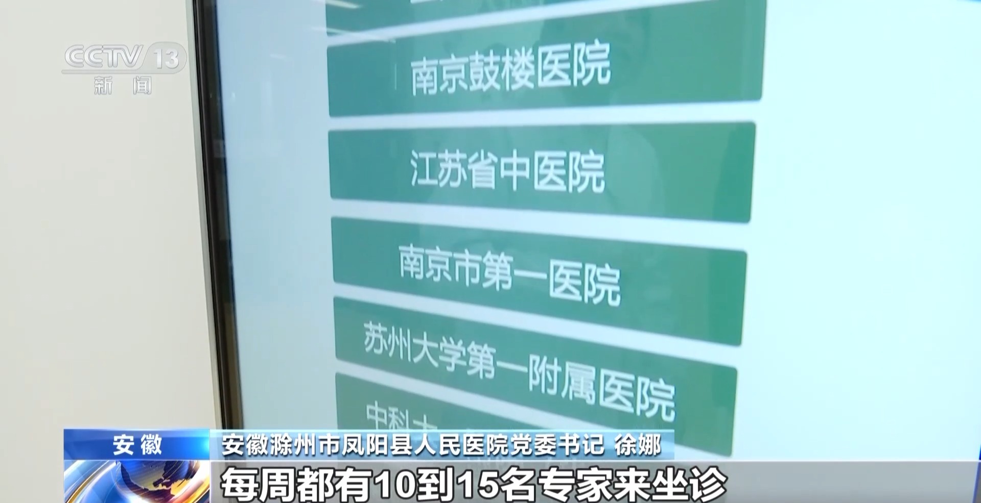 安徽滁州市凤阳县人民医院党委书记 徐娜:我们目前已有18个科室对外合作,每周都有10名到15名专家来坐诊。 虽然只是一家县级医院,但凤阳县人民医院已和长三角十几家顶尖三甲医院签约合作,患者不仅可以通过绿色通道转至医联体内上一级医院,也可以挑选长三角三甲医院的专家来这里给他们做手术。60岁患者叶洪霞在凤阳县人民医院查出胃间质瘤后本想转往蚌埠市就医。 患者叶洪霞儿媳妇:我的第一想法是赶紧去大医院,但是县人民医院医生说这边正好有上海过来的教授。