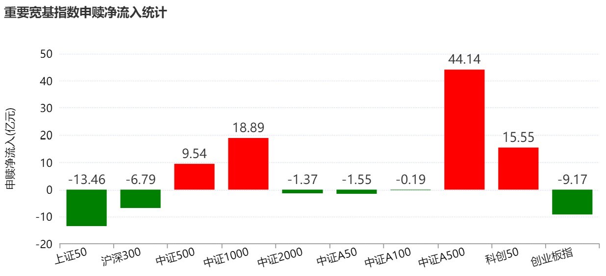 细分来看,主要宽基指数整体资金申赎统计显示,本周中证500净流入44.14亿元,上证50净流出13.46亿元。