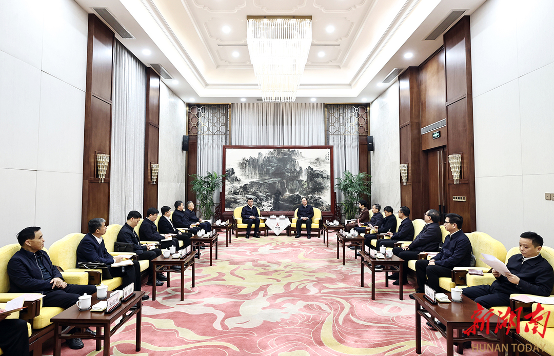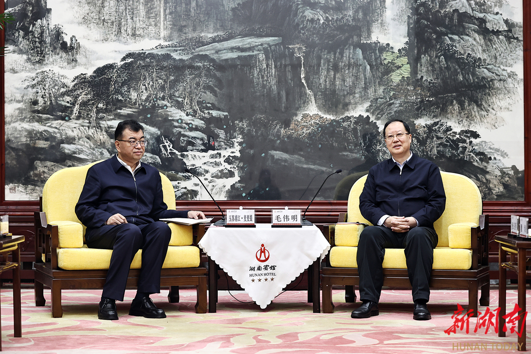 6日上午,毛伟明与玉苏甫江·麦麦提交流。 毛伟明对代表团一行来湘访问表示欢迎。他说,湖南与新疆虽相隔千里,但渊源深厚、情谊绵长。近年来,湖南完整准确全面贯彻新时代党的治疆方略,扎实做好对口支援吐鲁番市、新疆生产建设兵团221团工作,持续开展产业互补协作,两地交往交流交融不断深入。对口援疆27年以来,湖南累计派出10批1363名干部人才,投入援疆资金50多亿元,建成了一批打基础、惠民生、促发展的项目;350余家湘企进疆投资、投资额超500亿元,新疆来湘投资企业超80家、投资额超135亿元。“十五五”期间,湖南将继续以援疆兴边为己任,与新疆深化产业发展、经贸投资、能源开发、教育科技、文化旅游等方面交流合作,立足新的起点,共同谱写湘新合作新篇章。
