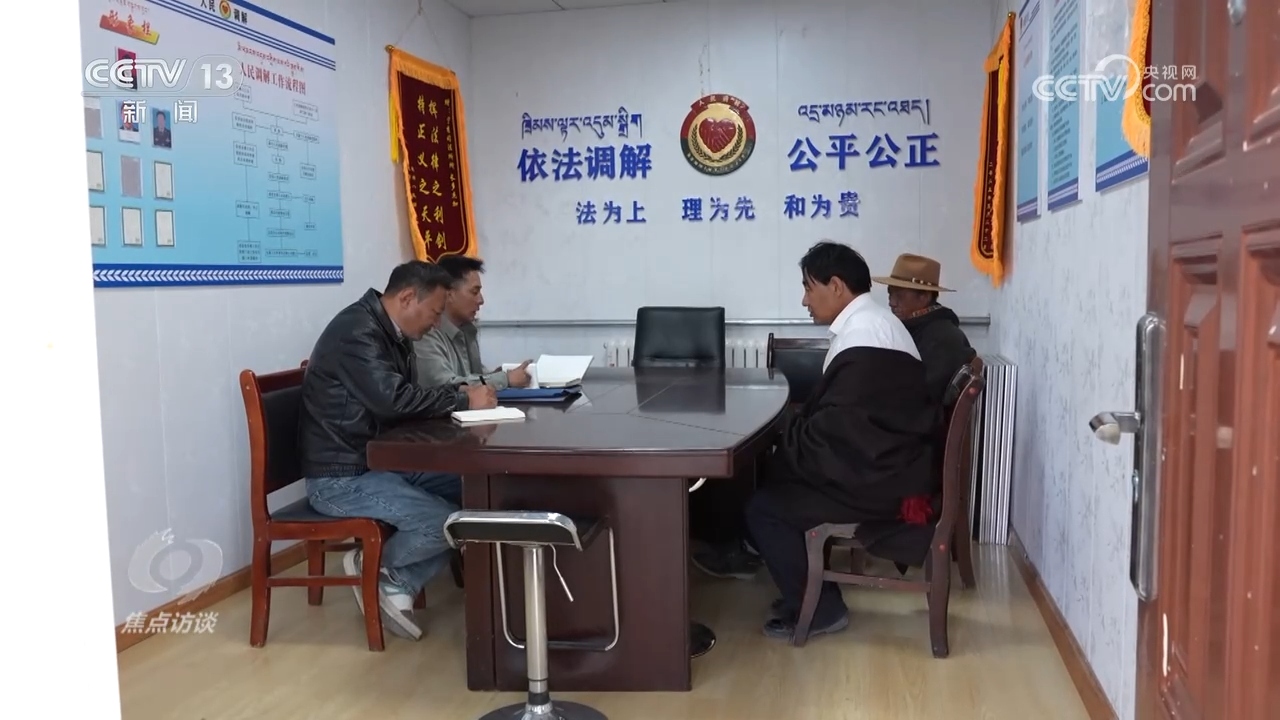 用“沾泥土、带露珠”的顺口溜,把“法言法语”变成“乡音土话”。在秦巴山区,“知客”们通过“土味普法”让宪法法律深入人心。 截至目前,四川全省已经培养认定“法律明白人”21.7万人,平均每个村(社区)5人以上。全省“法律明白人”年均参与法治宣讲10万多场,参与调处矛盾纠纷近8万件……有力地促进了基层依法治国提质增效。 告别秦巴山区,我们再将目光投向大西北。在宪法宣传周里,青海上万名的“法律明白人”穿梭在高原牧场。 在青海泽库县宁秀司法所的调解室里,“法律明白人”索南才旦正在调解两名牧民的牛羊买卖合同纠纷。