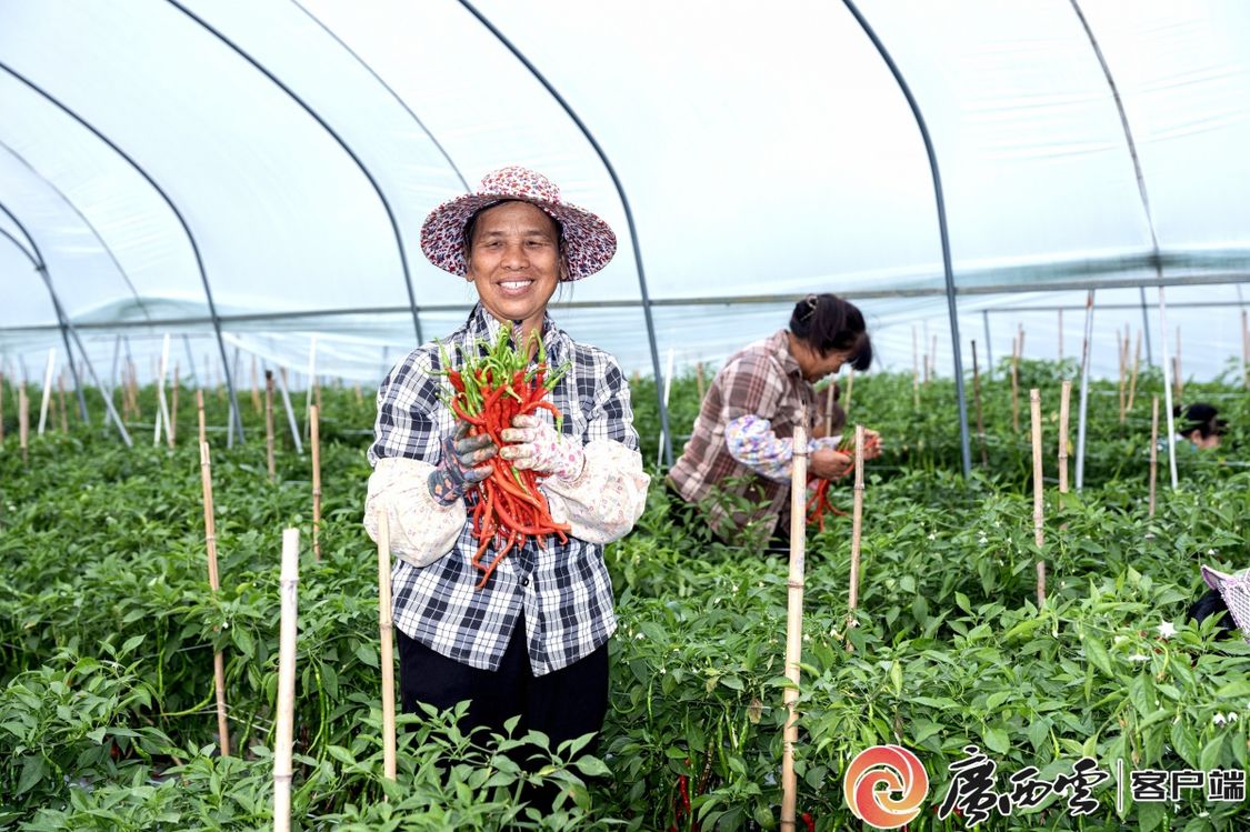 田东县平马镇百谷红军村红线椒基地,村民摘收忙。 周金鹏 摄 临近大雪节气 冬日暖阳轻洒右江河谷 捎来大地最温柔的絮语 百色市秋冬菜种植进度较去年同期提前约8至10天 种植面积达117.24万亩 较去年同期增加1.25万亩 秋冬菜种植 田东县在百色市颇具代表性 形成 “企业+合作社+农户” 利益联结机制 “冬闲田”在这里持续书写丰收乐章 贺州鲜蔬:山海快送粤港澳