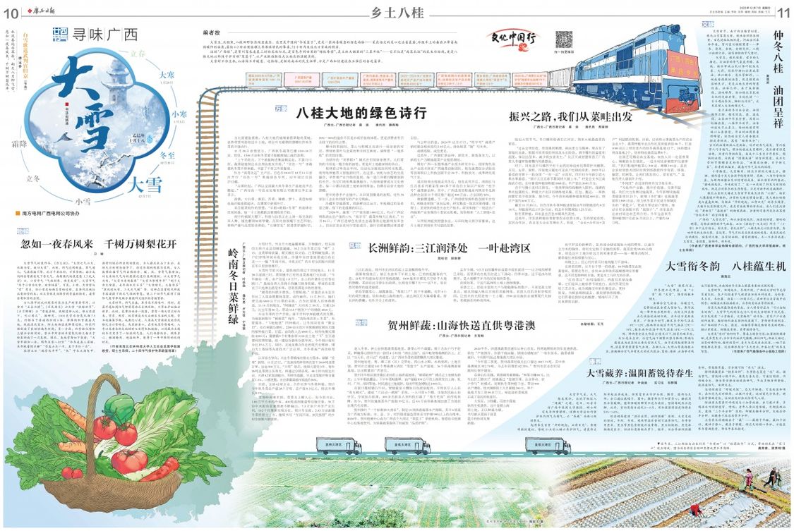 2025年12月7日广西日报10—11版“二十四节气·寻味广西|大雪”连版截图 八桂大地的绿色诗行