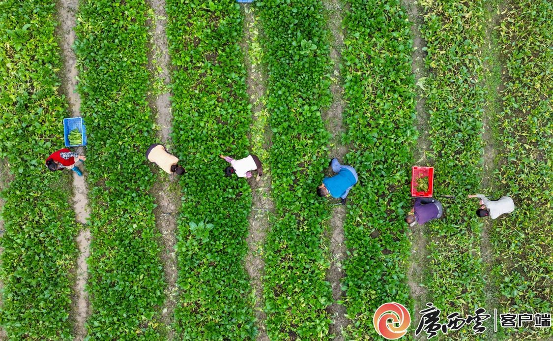 已采摘过一轮的蔬菜上海青。 钟山县供港蔬菜基地 毗邻粤港澳的沃土 正以“当天采、次日达”的速度 让广西秋冬菜的清甜飘香大湾区餐桌
