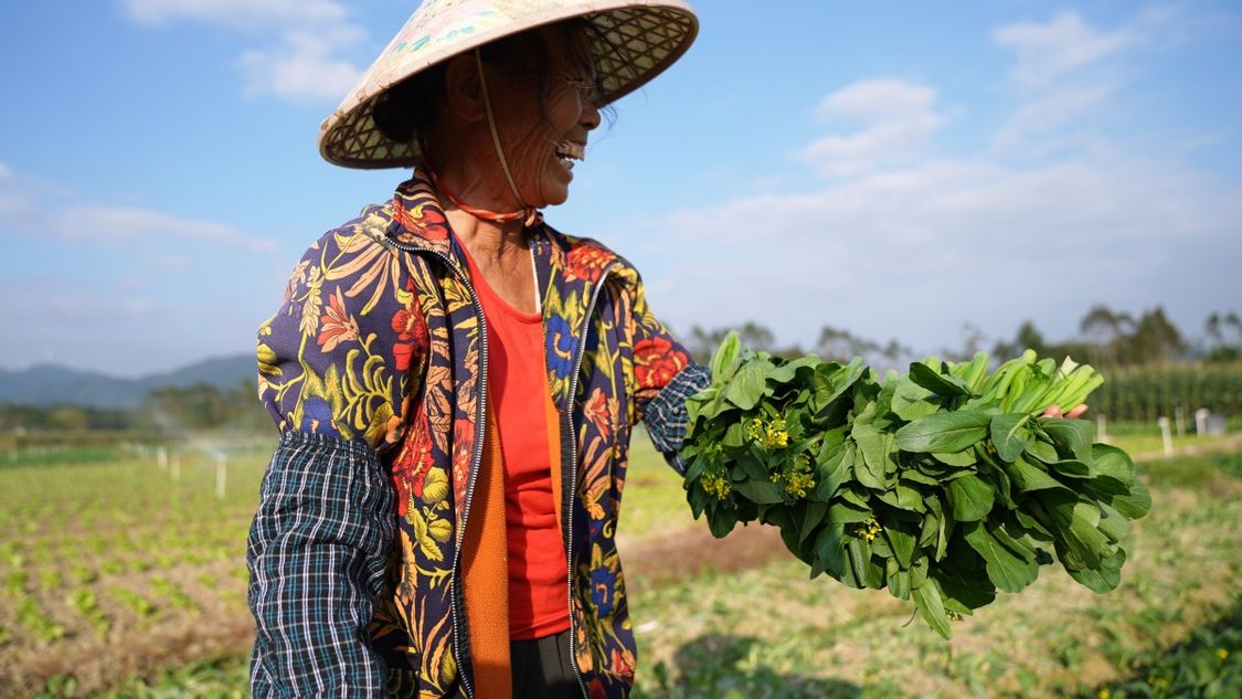 在兴业县百嘉农业生态合作社的种植基地,农户看着丰收的蔬菜喜笑颜开。何书畅 摄 预计冬至前 兴业2.43万亩新播冬菜将接力上市 继续书写“冬闲不闲、农民钱甜”的 乡村全面振兴新篇章 忽如一夜春风来 千树万树梨花开