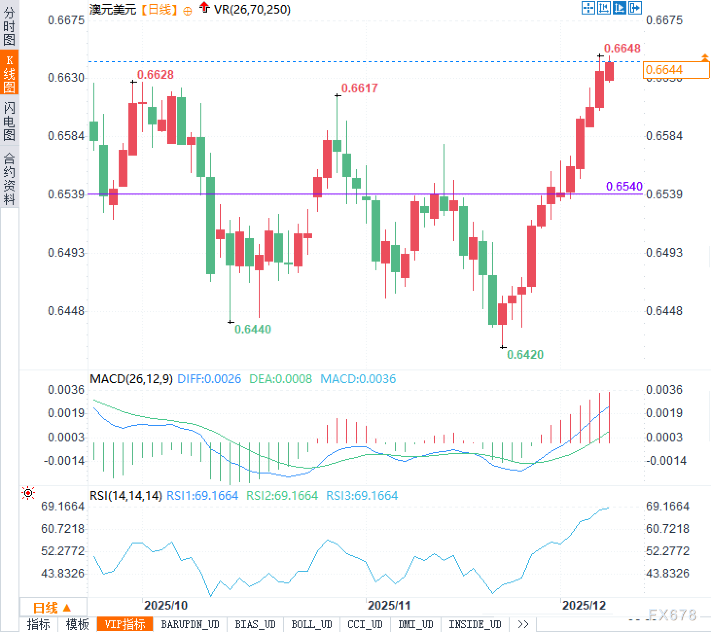 12月8日,星期一。美元整体维持偏弱震荡态势,美元指数在五周低点附近徘徊,反映出市场对美联储即将开启降息周期的普遍预期。与此同时,非美货币中,澳元表现尤为突出,兑美元连续第十二个交易日上涨,盘中一度逼近0.6650的关键心理关口,创下两个多月以来的新高。 ![]() 美国方面,最新公布的个人消费支出物价指数(PCE)虽显示核心通胀率略有回落至2.8%,但仍显著高于美联储2%的长期目标。然而,更受市场关注的是消费者对未来通胀的预期指标——密歇根大学调查显示,一年期和五年期通胀预期均出现下降,这被解读为家庭部门对价格前景趋于乐观的信号。尽管如此,近期劳动力市场数据持续走软,新增就业岗位减少,失业率温和上升,这些都强化了市场对美联储将很快启动降息操作的判断。根据利率期货市场的定价,本周三美联储宣布下调联邦基金利率25个基点的概率已高达87%。这一高度一致的降息预期,使得美元资产的相对吸引力有所削弱,美元指数承压运行。值得注意的是,美联储内部对于未来政策路径仍存分歧:部分委员认为关税等因素可能重新推高物价,主张保持谨慎;而另一些成员则倾向于顺应经济放缓趋势,推动更快降息。这种政策不确定性虽然暂时被降息共识所掩盖,但一旦后续数据出现反复,仍可能引发市场波动。 相比之下,澳大利亚的宏观经济图景呈现出不同的节奏。第三季度消费者物价指数同比上涨3.2%,较第二季度2.1%的涨幅明显加快,显示出通胀压力再度抬头。这一数据打破了此前市场对澳洲通胀将持续回落的线性预期,促使交易员迅速调整对澳洲联储未来行动的押注。此前普遍存在的“澳洲联储将跟随全球多数央行进入降息周期”的鸽派预期正在被修正,越来越多的投资者认为,至少在短期内,澳洲联储可能会选择按兵不动,甚至不排除在未来某个时点重新评估收紧政策的可能性。这种货币政策立场的潜在转变,直接提升了澳元的利率吸引力。此外,商品价格,尤其是铁矿石等关键出口资源的价格企稳回升,也为澳元提供了基本面支撑。在全球增长前景尚不明朗的环境下,澳大利亚相对较强的通胀表现反而成为支撑本币走强的独特因素,体现出不同经济体在应对周期波动时的非对称反应。 市场表现来看 澳元兑美元的技术形态展现出明确的上升趋势。连续十二个交易日的上涨不仅突破了多个短期阻力位,也在日线级别形成了稳定的多头排列。价格目前0.6644,已回到并站上前期关键水平,显示阶段性重心上移。上方0.6650区域对应前高与心理关口叠加,短期存在一定技术性消化压力。 ![]() 展望未来 澳元兑美元的进一步走向将取决于两大核心变量的博弈:一是澳洲联储在本周二货币政策会议上的表态是否确如市场预期般转向鹰派或至少表现出更高的警惕性;二是美联储在周三议息会议后所提供的政策指引能否缓解市场对其过早或过度降息的担忧。若澳洲联储明确释放暂停降息甚至考虑重新收紧的信号,同时美联储在会后声明中强调通胀风险未消、未来行动需依赖数据,则澳元有望突破0.6650并测试更高水平。 反之,若澳洲联储重申宽松立场,则当前澳元的涨势可能面临回调压力。此外,市场还将密切关注美联储公布的利率点阵图,该图表将揭示美联储对未来利率路径的集体看法,尤其关于2026年的利率预测将成为判断政策可持续性的关键依据。目前缺乏最新的非农就业和通胀数据作为参考,使得此次会议的沟通艺术显得尤为重要。