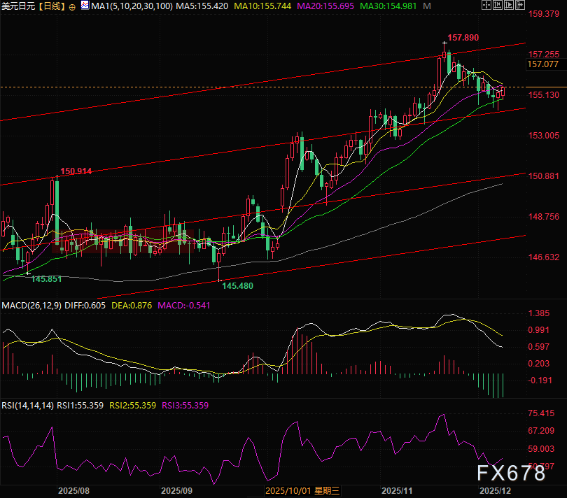 周一(12月8日)亚欧时段,美元兑日元下探至154.90附近后展开反弹走出探底回升的走势,暗示了美元兑日元下跌力量的衰减,但再次之前日元已经连续升值约两周,同时日本十年期国债收益率继续创高,暗示着日元可能继续走强。 ![]() 日本央行多位官员释放的鹰派信号成为日元短期走强的核心催化剂,市场预期其最早将于下周启动加息。 这一政策倾向已获得政府层面的默许,日本央行行长植田和男已向高市早苗首相证实,日元贬值不会导致通胀回落,为加息扫清了政治障碍。 同时,高市早苗内阁预计可能会动用窗口指导,通过官方表态支持本币走强,以缓解高进口价格传导的输入性通胀压力。 数据支持日本央行加息 通胀数据进一步夯实了加息合理性:尽管日本9月季度GDP按年率计算萎缩幅度从1.8%下修至2.3%,但衡量整体价格压力的隐性价格平减指数从2.8%大幅上修至3.4%,延续近两年高位运行态势,标志着通胀正从"输入性驱动"转向"内生性固化"。 同时薪资数据更添动力,10月名义薪资同比增长2.6%创三个月新高,基本工资、加班费与奖金全面增长,且工会计划在明年春季谈判中争取5%以上加薪,有望推动薪资-物价螺旋形循环。 美元弱势与利差收窄预期 日元走强同时受益于美元指数的弱势承压。 目前市场已基本锁定美联储最早于本周实施25个基点降息,这种宽松预期与日本央行的收紧倾向形成鲜明对比,理论上会推动美日利差收窄,进而压制美元兑日元汇价走势。 近期日本十年期国债连续创高是央行加息、央行退出资产购买转而抛售以及政府发债等联合推动,这些都使美日利差持续缩小。 摩根士丹利此前曾预测,若美联储进入连续降息周期,美元兑日元可能续跌近10%,2026年一季度或使日元触及140水平。 同时,随着日元连续升值,也浮现了一些制约日元继续走强的因素 利差影响有限,限制日元回流数量 值得关注的是,尽管日本国债收益率已攀升至2007年以来峰值,且跨境资本出现回流迹象,但市场未受实质性冲击。 核心原因在于经通胀调整后,日本债市实际收益率仍低于国际同类水平,且较低的对冲成本为养老基金海外配置提供了流动性支撑,削弱了资本回流对日元的提振效应。 财政与货币的政策冲突 日本政府与央行的政策协同性存疑。第三季度2.3%的经济收缩,为高市早苗内阁通过发债扩大财政刺激提供了依据,但货币政策收紧将直接推升债务付息成本,这种"宽财政+紧货币"的冲突格局,可能制约日元升值空间。 美联储的"黑天鹅"风险 美元走势可能出现超预期反弹。若美联储主席鲍威尔在降息落地后释放鹰派论调,并发布偏谨慎的利率路径指引,将直接强化美元短期支撑,对日元多头形成冲击。这种"降息落地但预期降温"的情景,曾在历史多次政策转向中引发汇率逆转。 机构观点: 当前机构对美元兑日元的展望呈现显著分化:瑞银集团已将年末汇率预测从152上调至158,美国银行更预计2026年初该交叉盘将触及160;但也有分析师团队仍坚持,货币政策分化将驱动日元进入升值通道。 这种分歧背后,是2024年底的历史教训仍在影响市场情绪——当时日元曾被贴上"强势货币"标签,却因日本央行政策行动滞后,在11月底前沦为G10货币中表现最差的品种。 交易视角的结论 当前日元交易的核心矛盾,在于"确定性政策预期"与"不确定性执行效果"的博弈。 尽管通胀与薪资数据为加息提供了坚实支撑,且美日政策分化的大方向未变,但历史教训与政策冲突意味着日元升值之路难以一帆风顺。 对交易者而言,需警惕"政策利好兑现即利空"的风险,在追逐日元多头机会时,应密切关注日本央行会后声明、美联储利率指引及美日利差变动,避免陷入预期差陷阱。 总结与技术分析: 由于日元长期稳定、低息的特点,常被作为全球流动性的提供者,日元升值会引起借日元投资的资金需要卖出美元来锁定汇率风险,卖出美元又进一步推动日元升值,故日元本次回调过后可能会重新开启下一轮升值。 美元兑日元下跌触碰到汇价的上升通道中轨后展开反弹,目前短期支撑在5日线,之后是30日线的支撑,最后是上升通道中轨,跌破这些点位意味着日元回调结束,可能继续升值。 同时压力位为156.26和10日线,是日元调整结束继续升值的可能点位。 ![]() 美元对日元现报155.60/61。