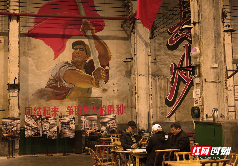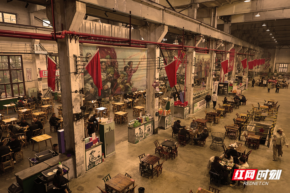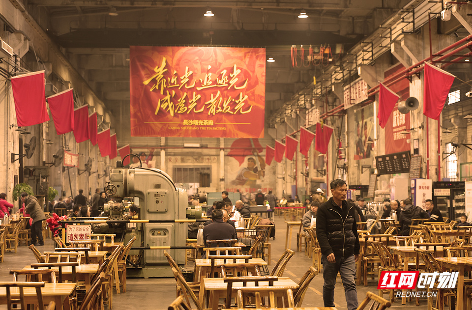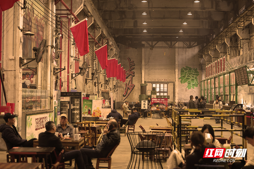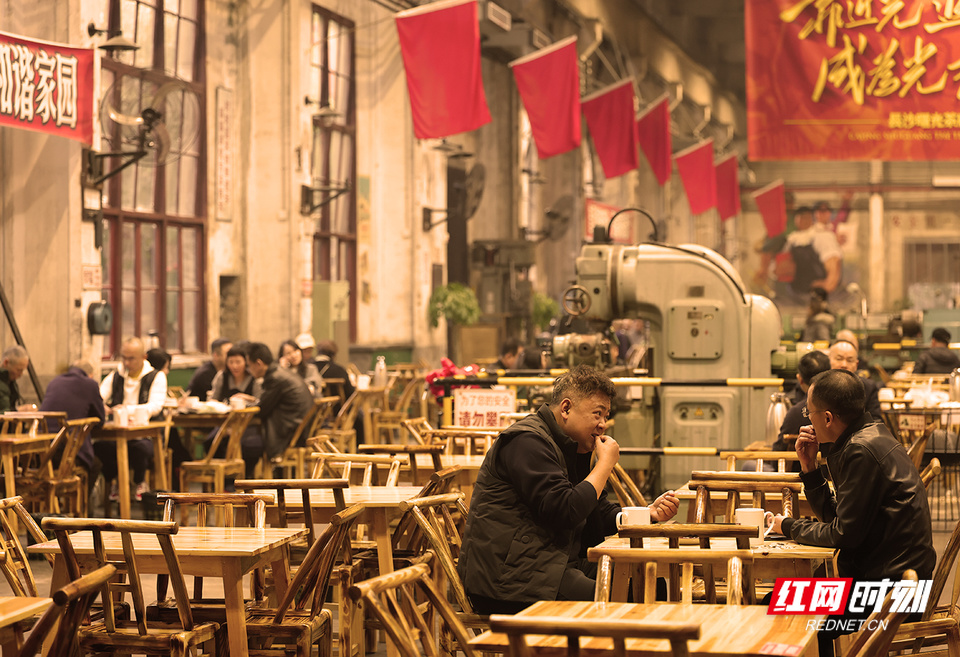 红网时刻新闻记者 陈杰 长沙报道 斑驳的机器与芝麻豆子的茶香交织,旧工业时代的轰鸣如今被欢声笑语取代……这里是长沙曙光茶厂·湖南米粉博览馆——一个让几代人找回青春记忆的地方。 走进曙光茶厂·湖南米粉博览馆,仿佛踏入了一条连接过去与现在的时空隧道。我端起相机,对准了一台锈迹斑斑的旧机床。一位老人正指着它,对身旁的孙儿轻声说道:“这就是我们当年的青春。”老厂房的墙壁上,还保留着上世纪五六十年代流行的宣传画,所有的岁月痕迹都被完好无损地保留下来。 一名退休工人告诉我,每次来这里喝茶,都像是回到了自己的青年时代。这些老物件虽然不是古董,却是那个年代真实的见证,每一道划痕都是一个故事。 在工作日,这里是老年人的聚集地,他们悠闲地品着芝麻豆子茶,仿佛时间都慢了下来。 一位摄影师同行告诉我,他最钟爱的是黄昏时分,夕阳透过老厂房的窗户,在地面上投射出斑驳光影。他说,那一刻按下快门,总能捕捉到记忆与现实最美妙的交融。他们或许从未见过这些机器运转的样子,却被那种沧桑感和历史美感深深吸引。 不远处,几位老人正围坐一起打牌,瓷茶缸随意地摆在桌上,竹椅发出的吱呀声,勾起了我对老长沙的记忆。 这些老厂房改造时并没有大动干戈,而是选择了“修旧如旧”的方式。这种改造方式让整个空间既保留了原有的工业韵味,又注入了新的生命活力。 那些曾经沉寂的工业遗存,如今在茶香与米粉热气中重获新生。这里不仅仅是消费场所,更像是一座城市记忆的活态博物馆,让长沙市民在时代变迁中,常怀一份对城市记忆的尊重。