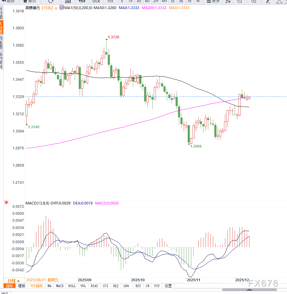 英镑兑美元在周二亚洲早盘获得温和买盘支撑,保持在1.3300关键水平之上。尽管前一交易日价格呈现双向震荡,但整体走势仍略偏向英镑,因为美联储即将公布的政策决定被广泛视作偏鸽,这削弱了美元近期的反弹动力。 ![]() “英国经济增长预期被上调,使英镑在主要货币中维持相对优势。”——欧洲宏观研究机构高级分析师 尽管如此,英镑多头仍不愿激进加仓。英国最新的CPI数据显示,10月通胀从此前连续三个月的3.8%降至3.6%,使市场进一步押注英国央行将在下周会议上启动降息周期。 未来政策路径的不确定性限制了英镑的上攻空间。市场更加倾向等待美国就业相关数据——包括 ADP 就业变化与 JOLTS 职位空缺——以寻求新的交易动能。 “美联储的政策基调仍是美元短线方向的核心驱动,而英国通胀回落让市场重新评估英国央行的降息节奏。”——外汇策略师 “英镑兑美元的上行需要更强的基本面支持,否则可能继续维持区间震荡。”——英国金融市场分析师 从英镑兑美元日线结构来看,汇价自1.3000心理关口反弹后逐步走高,目前稳步运行在短期均线之上,显示中期上行动能仍具韧性。然而,上方1.3360—1.3400区间构成强阻力带,与前期密集成交区重叠,对多头形成明显压制; 若价格无法突破该区间,短线仍可能维持震荡格局。技术指标方面,MACD动能放缓、RSI徘徊在中性偏强区域,显示上行动力虽未完全消失,但多头需要更强基本面配合才能突破当前结构。 若价格意外跌破1.3260,可能触发回调至1.3180附近;反之,若成功站稳1.3400上方,将为进一步上行打开空间。 ![]() 从当前的结构来看,英镑兑美元在1.3300上方的企稳更多来自美元疲弱,而非英镑本身的强势。短期走势将继续围绕两大央行的政策差异展开。 如果美联储释放更偏鸽的信号,而英国央行的降息预期仍维持温和,英镑兑美元可能维持高位震荡甚至扩大上行区间;反之,如果英国央行释放更明确的宽松信号,则英镑上涨动能将明显受限。