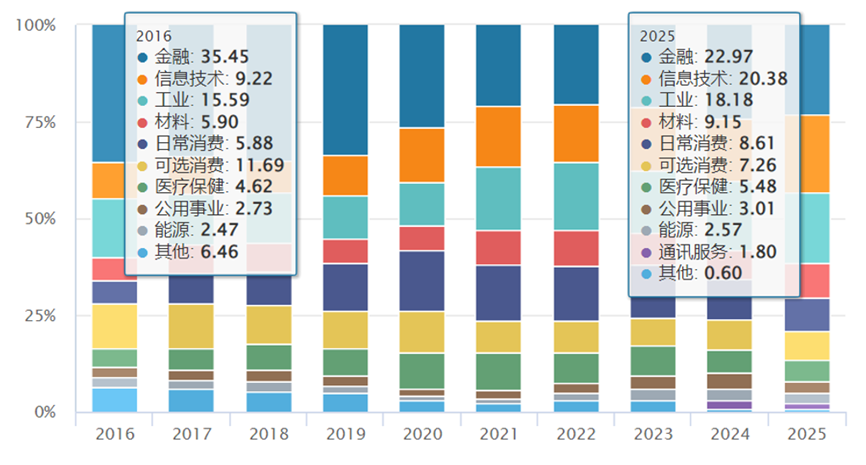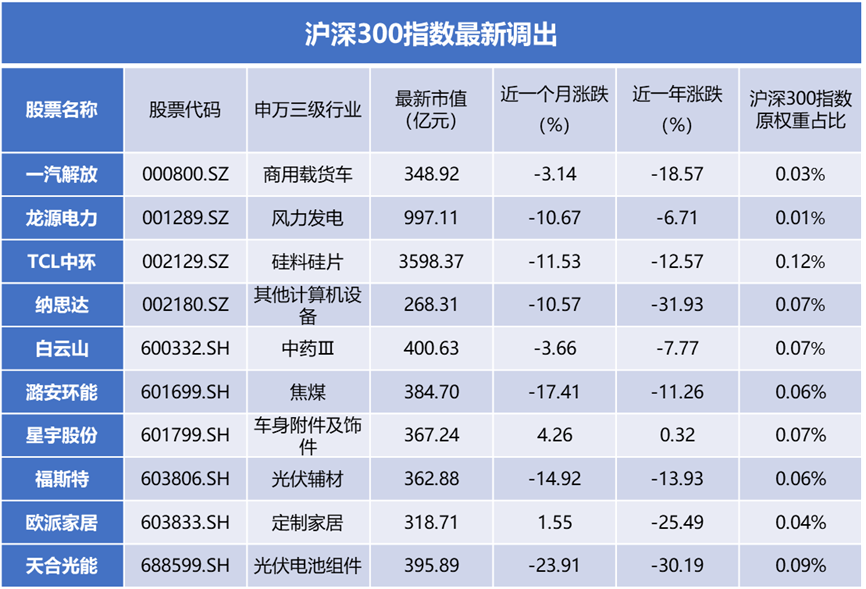 (来源:Wind,上交所、中证指数公司官网,数据截至2025年12月8日) “小登”为何取代“老登”? 根据指数编制规则,沪深300指数由沪深市场中,规模大、流动性好的最具代表性的300 只证券组成。 在实际筛选进入沪深300指数样本时,不仅仅看市值、成交额这两大指标,还要经历几道严格的筛查。 首先排除ST(其他风险警示股)、*ST(退市风险警示股); 其次,对上市时间有要求:(1)上市时间超过一个季度,但有一种情况可以提前调入:上市以来日均总市值排在前30位;(2)如果是科创板、创业板上市公司,上市时间要求更严格,需要超过一年。 当然,还要排除纯靠炒作抬高股价的“妖股”:(1)经营状况良好、无违法违规事件、财务报告无重大问题;(2)证券价格无明显异常波动或市场操纵。 最后,对上述进入样本空间内的证券,再对成交金额、市值进行两轮筛选:(1)按照过去一年的日均成交金额由高到低排名,剔除排名后50%的证券;(2)剩余证券,按照过去一年的日均总市值由高到低排名,选取前300名的证券作为指数样本。 从筛选结果来看,最新符合调样条件的,不少是迅速成长起来的“新兴行业”龙头,也是我们常说的“小登”,这与过去一年(2024.11.1~2025.10.31),A股经历的科技占优的结构性行情息息相关。 在国内宏观经济尚未全面复苏之际,部分科技龙头凭借相对稀缺的AI产业高景气度,以及出海业务的确定性增长,受到资金的热捧,在本轮行情中,成交额、市值迅速壮大,典型的像胜宏科技短短一年股价翻了数倍(不作为个股推荐)。展望未来,科技成长依然是本轮行情的主线,也是国家“十五五”规划重点扶持的产业方向。沪深300指数调入这些新样本,也是为了适应市场新结构、保持指数自身的代表性。 沪深300指数“新质生产力”含量提升是好事吗? 近年来,沪深300“新质生产力”含量持续提升,同时相对减配金融、消费,已经成为趋势。 对比2016年和2025年,沪深300指数的行业权重,可以清晰看到:金融行业权重从35.45%降至22.97%;与此同时,信息技术行业从9.22%,大幅增至20.38%。这里的信息技术,就包含了通信、电子、计算机等行业。 像沪深300指数成分股里的工业富联、中芯国际、中际旭创、寒武纪-U、海光信息、新易盛、立讯精密、北方华创等等,都属于信息技术行业范畴。