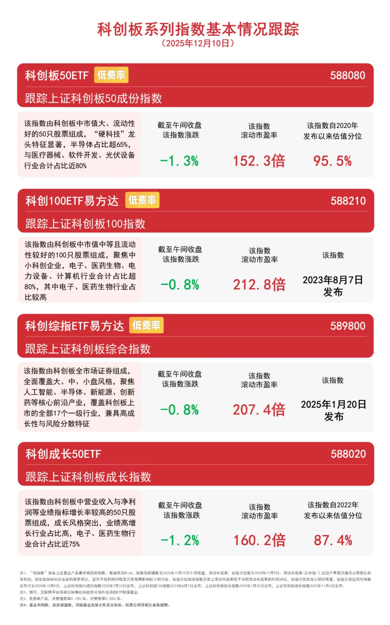 截至午间收盘,科创100指数、科创综指均下跌0.8%,科创成长指数下跌1.2%,科创板50指数下跌1.3%。Wind数据显示,科创板50ETF(588080)昨日净流入近3亿元。