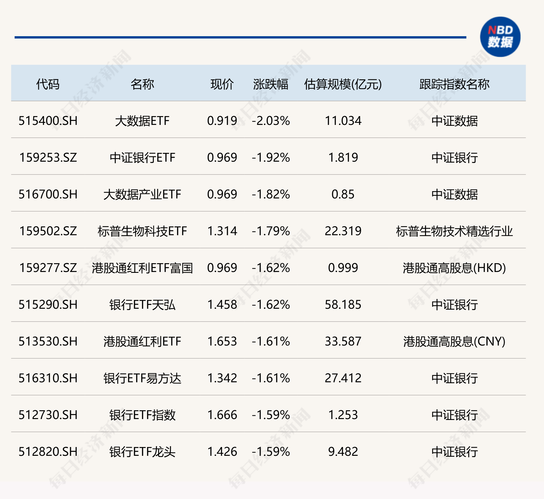 有分析认为,房企基本面处于“磨底”阶段。未来一段时间,加码政策出台及行业基本面站稳回升的进程,将主导板块行情走势。中长期来看,行业发展将从“高杠杆、高周转”转向“品质、服务、可持续”,并以城市更新释放存量潜力。 下跌方面,大数据ETF跌超2%。
