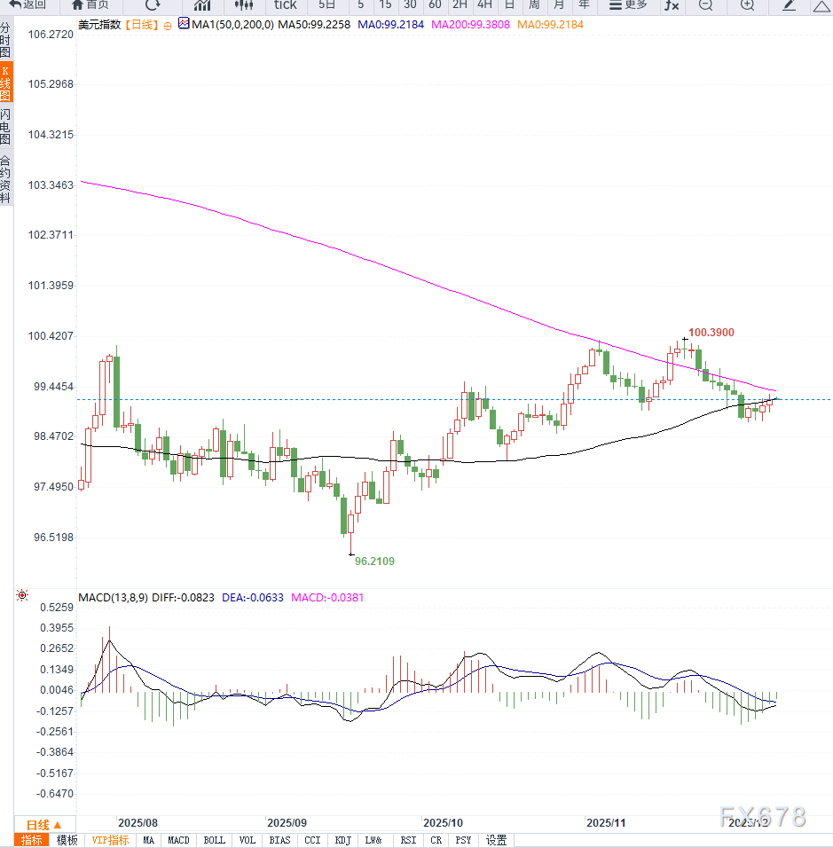 周三亚洲时段,美元指数维持在99.20附近的小幅震荡,投资者在美联储公布政策决定前普遍选择观望。当前市场的核心变量来自美国近期公布的就业数据与美联储即将释放的政策信号,这将共同决定美元的短线与中期方向。 ![]() “就业数据的韧性提升了美联储谨慎立场的可能性。” ——纽约某大型金融机构外汇策略师 然而,在美联储已经明确进入宽松周期的大背景下,单一数据对长期趋势的影响仍然有限。 美联储会议关键在“降息基调”而非动作本身 市场普遍预期Federal Reserve将在会议上实施25个基点降息,而真正影响美元方向的是政策声明与新闻发布会的基调。 不少分析人士认为,美联储主席Jerome Powell可能强调未来宽松空间有限,从而构成“鹰派降息”。 “最可能的情形是降息,但声明和发布会暗示未来降息节奏将放缓。” ——Bill English,前美联储货币事务主管 若美联储释放谨慎信号,美元有望获得阶段性支撑;反之,若维持更偏鸽的语言,则美元可能继续承压。潜在的美联储主席更替为美元带来另一层不确定性 市场亦在关注美国政府近期释放的信号:Kevin Hassett被视为接替鲍威尔的热门人选。 分析人士普遍认为,他倾向更为宽松的政策立场,未来若掌权,可能加快降息节奏。 这意味着尽管美元因就业数据获得短线支撑,但中期走势反而出现偏弱风险。 美元指数的真正驱动力在未来路径而非当前水平 当前美元指数虽处于低位,但美元方向的真正决定因素是—— 美联储未来是否继续宽松、降息节奏如何变化、以及潜在主席更替后货币政策是否更趋鸽派。 在这些核心变量明朗前,美元指数大概率继续维持区间震荡。 从美元指数日线结构来看,整体仍处于“弱反弹后的区间整理”格局,技术面呈现偏弱震荡的特点。DXY在连续跌破短期均线后虽有小幅反抽,但始终难以站稳在关键均线之上,显示上方卖压依旧强烈。 K线近期多次在布林带中轨附近受阻,反映反弹力度有限;MACD动能柱持续在零轴下方震荡,显示行情缺乏持续上行动能。同时,底部支撑集中在前期低位98.80—99.00区域,一旦失守,可能打开进一步下探空间。 整体来看,美元指数正处于等待政策催化的敏感位置,在美联储会议落地前,日线图提示方向性突破仍需新的基本面推动。 ![]() 从结构性角度看,美元指数已经进入“政策主导型行情”,基本面数据虽影响短线波动,但决定中期趋势的仍是美联储的路径信号以及潜在领导层变化。 就业数据强劲只是表面支撑,真正需要关注的是美联储是否通过措辞改变市场对2025年宽松力度的理解。未来若政策预期进一步下修,美元易跌难涨的格局可能更为明显。