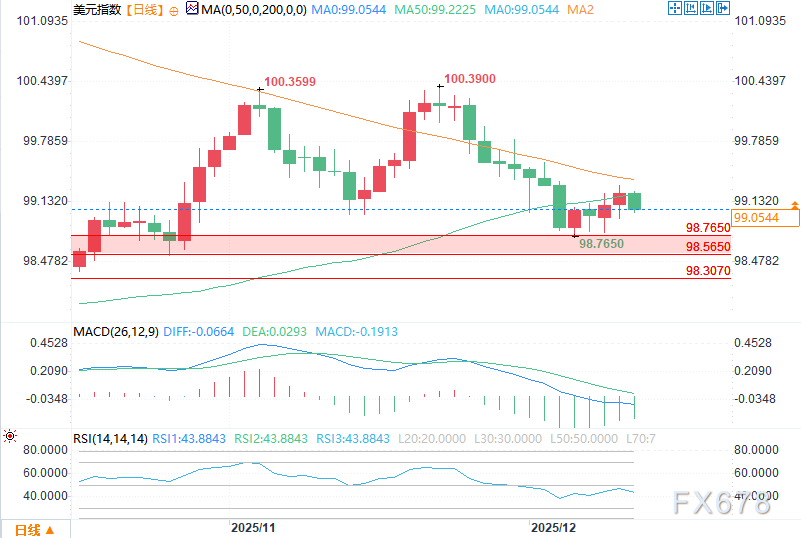周三(12月10日)美盘时段,美元指数小幅走低。市场正为美联储本年度最后一次议息会议做准备,外界普遍预计政策制定者将如期降息25个基点,将基准利率下调至3.5%–3.75%区间。对于美元交易者而言,核心关注点并非降息本身,而是美联储主席杰罗姆·鲍威尔的讲话基调——他将在讲话中阐明当前政策是否已足够紧缩,以及进一步宽松是否会导致通胀反弹。 ![]() 美联储政策声明指引美元前路 市场目前对本次降息的概率定价已达约90%,但联邦公开市场委员会内部的意见分歧为市场波动埋下伏笔。部分委员希望通过政策调整为走弱的劳动力市场提供缓冲——10月非农新增就业人数减少21.8万人,同时裁员人数增加7.3万人——然而当前通胀率仍持稳在2.8%的水平。 对于外汇市场而言,这种政策博弈提升了“鹰派降息”的讨论热度,即降息的同时,美联储会释放明确信号,暗示短期内进一步宽松的可能性极低。 若鲍威尔讲话立场更为谨慎,将强化市场对“美国实际收益率不会快速下行”的预期,进而对美元形成支撑。相反,如果他流露出对2026年进一步降息的默许态度——目前投资者预期明年将有2-4次降息——则可能因利差收窄而对美元构成打压。 非美货币随美联储降息预期波动 交叉货币的资金流向,仍取决于美联储是否释放政策长期暂停的信号。若美联储立场强硬,通常会对高贝塔货币构成压力,同时推动投资者转向追求收益稳定性,进而支撑美元。但如果鲍威尔表态显露出更大灵活性,外汇资金可能回流至风险敏感型货币对,令美元指数承压。 收益率与风险情绪制约美元交投情绪 截至12月,股票市场保持韧性,一定程度上抑制了市场对美元的避险需求。尽管如此,期权市场仍反映出较高的不确定性,市场波动幅度预期将与美联储政策声明及鲍威尔新闻发布会紧密挂钩。 技术分析 ![]() 日线级别下,美元指数目前承压于50日均线(99.223)下方。若有效突破该位置,将进一步向200日均线(99.406)迈进,该点位被视为触发美元指数加速上行的关键信号。若未能突破50日均线,指数则可能下探98.765–98.565区间支撑,一旦跌破98.565,后续将进一步考验98.307–97.814支撑区域。 市场预测:美元短期谨慎偏多 考虑到“鹰派降息”的潜在可能性,以及鲍威尔或将强调维持紧缩政策的立场,美元短期走势倾向于温和偏多。交易者需警惕市场双向波动风险,但政策信号整体仍指向有限宽松,收益率料将为美元提供支撑。 北京时间00:16,美元指数报99.0428/594,跌幅0.19%。