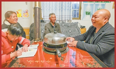 贵州凤冈县龙山村党总支书记杨光灿(右一)走访脱贫户任申家。 牟 瑜摄
