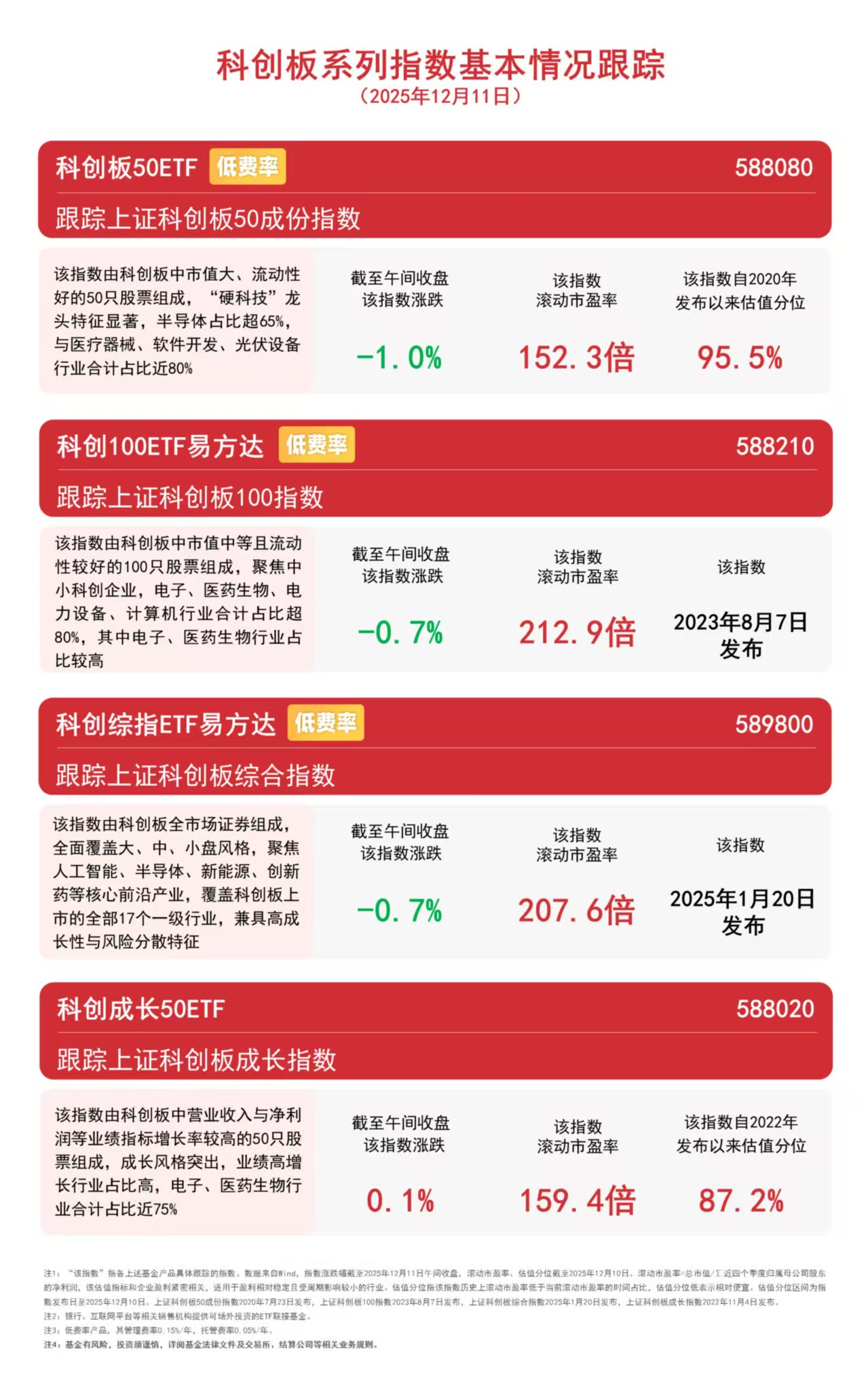 截至午间收盘,科创成长指数上涨0.1%,科创100指数、科创综指均下跌0.7%,科创板50指数下跌1.0%。Wind数据显示,截至昨日,科创板50ETF(588080)近一周获约6亿元资金净流入。