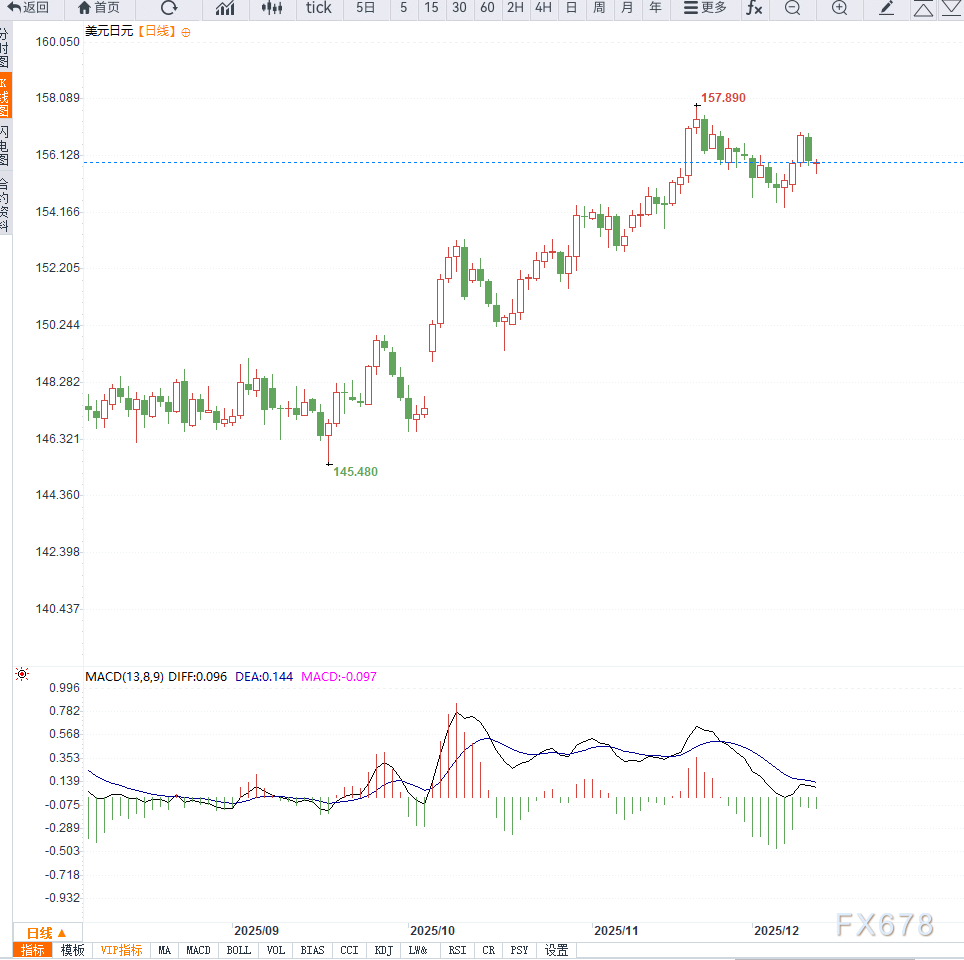 日元在周四延续上一交易日的强劲升势,再次对美元录得明显上行。核心驱动来自日本央行内部论调的变化——央行行长植田和男明确表示,通胀持续达到2%的可能性正在提高,使市场进一步押注最早在下周就可能加息。 ![]() 在宏观层面,日本政府由高市早苗主导的财政扩张计划加剧了公共债务的担忧,短线可能减弱日元的避险属性。 但市场的核心判断依旧围绕“政策拐点”展开,投资者倾向于关注央行紧缩信号,而非财政端的长期压力。 日本企业商品价格指数(CGPI)显示,通胀依旧处于高位,加大了货币政策正常化的必要性。 同时第三季度GDP下修为-0.6%(环比)及-2.3%(年率),暗示日本经济面临阶段性压力。不过,这一负面数据被工资增长预期所部分抵消,市场期待薪资提升将带动消费,形成更具内生性的通胀动力。 反观美元端,进一步走弱持续拖累汇价。鲍威尔重申美国劳动力市场存在下行风险,投资者由此推升2026年再度降息的预期。 “我们不希望货币政策抑制就业增长。”——美联储主席鲍威尔。 因此,美元的整体基调偏弱,宽松预期压低收益率,使日元保持相对强势。 接下来,市场关注美国初请失业金数据以及贸易差额报告,这些数据将影响美元和美元兑日元的短期走势。而真正主导未来方向的关键仍是日本央行12月18–19日会议。 美元兑日元(USD/JPY)技术结构出现进一步走弱信号。156.00关口与100小时均线的有效跌破,使空头动能明显增强。 小时图上的指标维持负面表现,MACD死叉扩大,短线压力沉重。 日线指标仍保持在中性偏强区域,说明下跌可能阶段性,但尚未形成趋势反转。 关键支撑位155.30:下降通道上轨突破位,为重要枢轴区间,预计将吸引买盘。 若跌破155.00整数位,则短线偏向空方,并或打开更大幅度调整空间。 上方阻力位: 156.00为首要反压区,若重新站稳,将有机会冲击 156.60 至157.00区间。 整体技术面呈“短线偏空,但中期仍为震荡结构”的格局。 ![]() 日元当前行情明显受政策预期主导。日本央行的任何措辞变化都会被市场放大,而美联储的降息路径进一步强化了利差收窄趋势,这是推升日元的核心逻辑。短线技术面虽有回调风险,但下方155.3区域支撑强劲,若日本央行真的加息,美元兑日元可能迎来更深度下探。