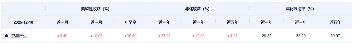 进一步对比两个指数的过往表现,在近一年和近三年,国证商用卫星通信产业指数的年化收益均高于中证卫星产业指数,不过在近五年,中证卫星产业指数的年化收益高于国证商用卫星通信产业指数。 在波动率方面,不管是近一年、近三年还是近五年,两个指数的年化波动率相差不大。