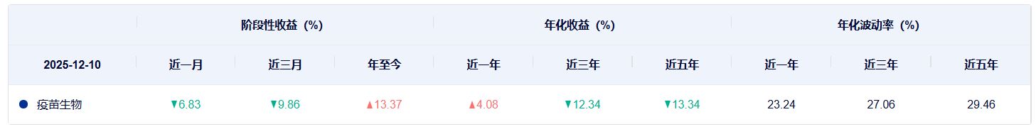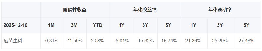 再对比两个指数的过往表现,从近一年、近三年到近五年,中证疫苗与生物技术指数的年化收益都好于国证疫苗与生物科技指数,不过两个指数近三年和近五年的年化收益均是负数。 在年化波动率方面,中证疫苗与生物技术指数的波动率要高于国证疫苗与生物科技指数。