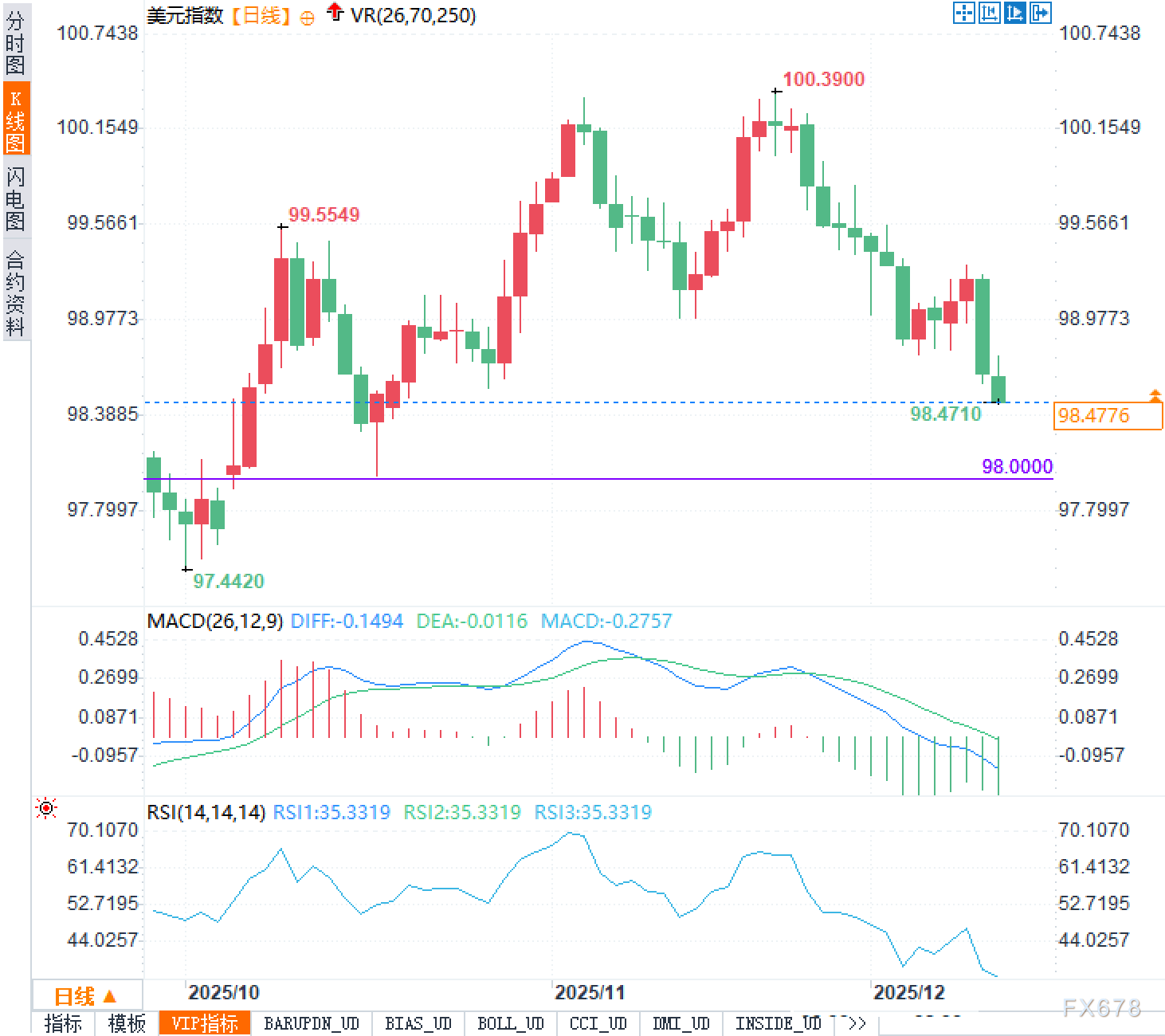 12月11日,星期四。市场在美联储议息会议结果公布后经历了一波明显的波动,美元指数在近期短暂测试99.30附近的区间上沿后回落,美市盘前报价徘徊在98.50一线附近。市场正处于对美联储未来货币政策路径重新定价的敏感阶段,决策层内部分歧的加剧与经济数据的空窗期交织在一起,为美元走势增添了不确定性。 ![]() 本次会议的投票结果同样值得关注。芝加哥联储主席古尔斯比与堪萨斯城联储主席施密德投票支持维持利率不变,而理事莫兰则继续坚持其支持降息50个基点的立场。这种"三方对峙"的投票格局在近年来的美联储会议中较为罕见,显示出官员们在通胀风险与就业市场冷却之间的权衡上存在根本性的认知差异。 美联储主席鲍威尔在新闻发布会上的表态则带有一定的鸽派色彩。他指出劳动力市场需求已"明显软化",并重申这种冷却并非仅由供给端因素所驱动,而是反映了需求端的实质性变化。这一判断对于理解美联储未来的政策倾向具有重要意义。鲍威尔还提及,若剔除关税因素的影响,通胀水平距离2%的政策目标已近在咫尺。这种"去除干扰项"的分析框架,暗示决策层可能并不打算因短期价格扰动而偏离既定的政策正常化路径。 值得注意的是,美联储宣布了一项400亿美元的国债购买计划,用于储备管理目的。官方强调这与货币政策的实施完全独立,但市场仍将其解读为一个边际宽松的信号。在官方数据发布因联邦政府停摆而出现空窗期的背景下,这一操作的时机选择颇为微妙。鲍威尔也坦承,从现在到下次会议之间将有大量数据陆续发布,这可能有助于弥合委员会内部的分歧并形成更为一致的政策共识。 市场表现 从指标层面来看,美元指数日线图上的MACD指标已呈现出空头排列态势,DIFF与DEA值均处于零轴下方,显示短期动能偏弱。相对强弱指数RSI则回落至35附近,处于中性偏弱区域,尚未触及超卖水平,表明若有进一步利空因素催化,下行空间在技术上仍未完全释放。然而,也需注意当前价位距离低点97.44已有一定缓冲空间,短线存在获利回补或逢低买盘介入的可能。 ![]() 交易员还关注即将发布的经济数据对美元走势的潜在影响。周度初请失业金人数预计将在感恩节假期扭曲效应消退后出现反弹,这一数据的边际变化可能为判断劳动力市场的真实温度提供增量信息。九月份贸易数据同样值得关注,尤其是在当前关税政策环境下,进出口结构的变化对于评估美国经济的外部平衡状况具有参考意义。今年前八个月,美国月均贸易逆差达892亿美元,明显高于2024年同期714亿美元的水平,出口增速亦有所放缓,这些结构性变化或将对美元的中期估值构成一定压力。 展望后市 美元指数的走向将取决于多重因素的动态博弈。短期内,市场焦点可能集中在即将发布的经济数据上,数据表现若持续印证劳动力市场降温的叙事,则可能强化市场对美联储明年降息的预期,从而对美元形成压制。反之,若通胀数据出现超预期反弹,或就业市场展现出超预期的韧性,美元则可能获得阶段性支撑。 2026年初美联储主席人选更迭的议题同样可能成为市场关注的焦点。尽管有分析认为这一人事变动不太可能实质性改变美国货币政策的整体走向,但新任主席的政策倾向与沟通风格仍可能在边际上影响市场预期的形成与资产价格的波动。在这种多空力量交织的环境下,美元指数在98至100区间内的震荡格局可能还将延续一段时间。