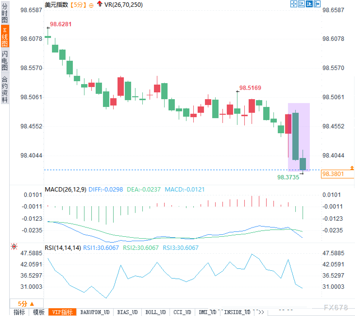 12月11日,星期四。当前北美时段美元指数交投98.30上方;刚公布的美国初请失业金人数及贸易账户数据成为焦点,前者显示出劳动力市场的短期波动,后者则揭示出对外部门改善的积极信号。这些数据共同构成了当前美元定价逻辑的重要组成部分,也促使交易员重新审视美元是否具备进一步上行的基础。 ![]() 值得注意的是,尽管单月贸易状况改善明显,但今年前九个月累计贸易逆差同比扩大1126亿美元,增幅达17.2%,说明进口增长依然快于出口,国内需求相对旺盛的局面未根本改变。这在一定程度上削弱了贸易数据带来的乐观情绪。此外,进口结构中药品制剂和非货币黄金的大幅增加,部分反映全球供应链重构与避险资产配置的变化,而非纯粹的消费需求降温。因此,该数据能否持续改善仍需后续观察。从汇率反应看,美元指数在数据公布后并未出现强势突破,反而维持窄幅震荡,说明市场对于当前美国经济的基本面定位趋于谨慎。投资者更关注的是未来几个季度中,随着全球其他经济体逐步企稳,美元资产的相对吸引力是否会减弱。 行情表现 从5分钟K线来看,美元指数自98.6281附近高点一路缓慢走低,中途在98.5169一线形成短暂反弹后再度回落,刚刚创出98.3735的新低,目前价格整体仍处于低位弱势区间。MACD指标在零轴下方运行,DIFF与DEA均为负值,柱体在前期放大后略有收窄,体现空头主导但下跌动能有所钝化。RSI维持在30上下,处于偏超卖区域,说明短线抛压释放较多,价格对新增利空的敏感度下降。尾端K线长阴之后出现带下影的小实体,显示低位有一定对冲力量,但形态上仍未形成明确反转结构,短期仍以震荡偏弱解读。若后续能否收复紫色区间的快速下跌段,将是观察情绪修复程度的重要信号之一。 ![]() 未来几周,市场将密切关注即将发布的零售销售、PCE通胀以及美联储官员讲话,以判断货币政策是否真正进入观望期。此外,地缘政治局势与能源价格波动也可能阶段性扰动汇率走向。