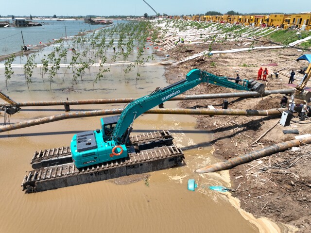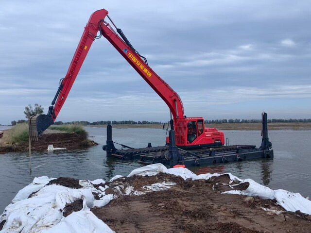 (山河智能研制的新型水陆两栖挖掘机正在作业。图源山河智能。) 据了解,该装备已在我国多项应急抢险任务与实战演练中经受考验。2024年至2025年间,它先后参与湖南洞庭湖决堤抢险、内蒙古土默特右旗堤坝溃口救援及“应急使命·2025”大型演习等任务,在断电、断网等极端条件下,依然能够高效开展作业,为打通救援“最后一公里”提供可靠的技术保障。