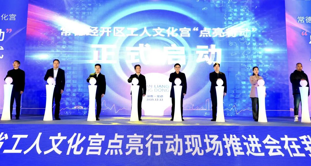 红网时刻新闻12月13日综合讯(常德日报记者 文斌 )12月12日,常德经开区工人文化宫“点亮行动”启动仪式隆重举行。该文化宫的建成启用,标志着常德经开区职工文体生活迎来新载体,园区公共服务配套进一步完善。湖南省总工会党组成员、副主席刘再衡,常德市人大常委会党组副书记、副主任、市总工会主席李育智,常德经开区党工委副书记、管委会主任刘智权,以及来我市参加全省工人文化宫建设现场经验交流会的代表们共同见证这一时刻。
