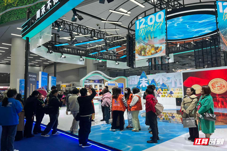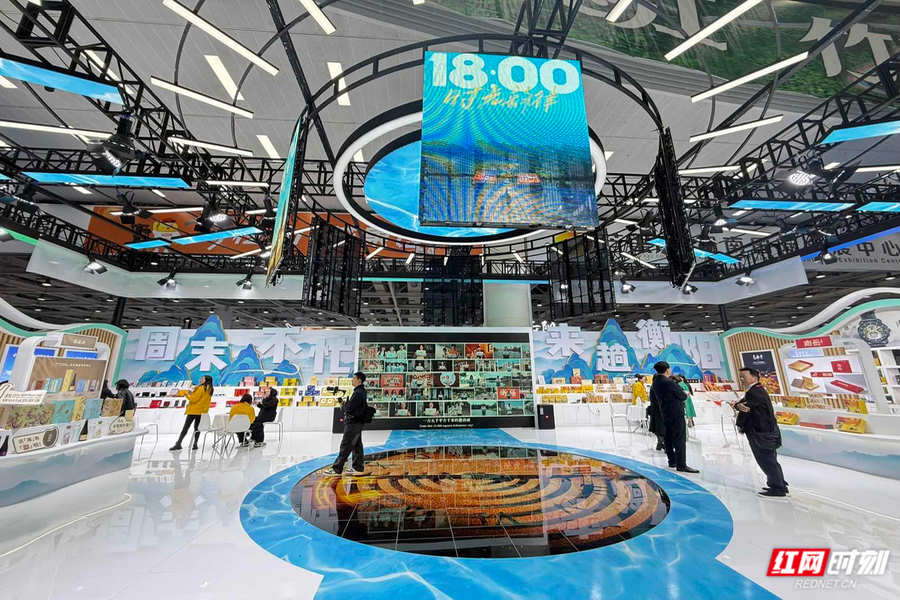 衡阳馆“六个时辰”沉浸式设计。 红网时刻新闻12月13日讯(记者 何超)12月12日-14日,2025湖南文化旅游产业博览会在长沙举行。衡阳馆凭借“六个时辰”沉浸式设计、丰富的地方展品与精彩的文化表演,成为展会焦点之一。当日,衡阳选送的商品在同期举办的2025湖南省文化旅游商品大赛中荣获一金、二银、四铜共计七项大奖,成绩亮眼。 本次衡阳馆位于T03展位,紧密围绕“周末不忙,来趟衡阳”的推介主题。展馆创新性地以六个时辰为线索,串联起衡阳的文旅精华,通过沙画表盘舞台、透明冰屏与环绕式动线设计,将抽象的时间概念转化为可沉浸游览的空间体验,让观众仿佛身临其境。