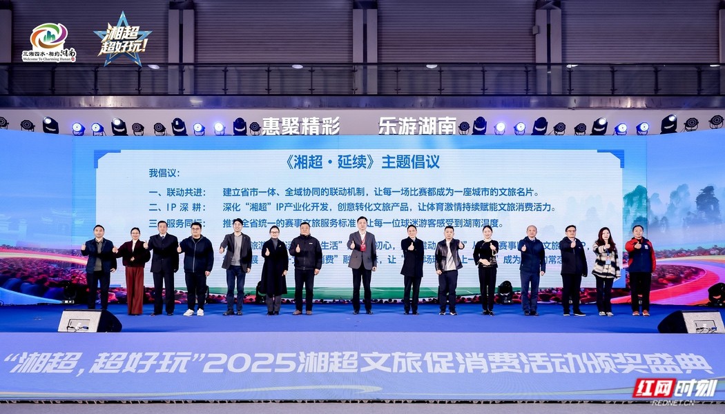 12月14日,“湘超,超好玩”2025湘超文旅促消费活动颁奖盛典在长沙举行。