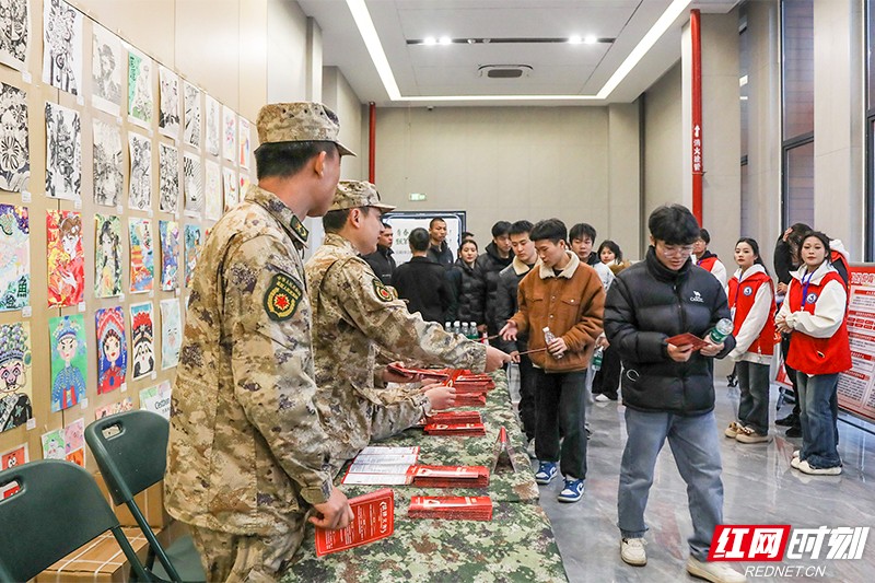 向大学生发放征兵宣传资料。 红网时刻新闻12月13日讯(记者 陈宗昊 通讯员 黎宇 曾祯 宋金林)12月12日下午,岳阳市2026年征兵宣传进高校暨征兵工作启动仪式在岳阳现代服务职业学院会议中心举行。军地有关领导和8所高校师生代表共500余人齐聚一堂,共同见证新年度征兵工作拉开序幕。 现场,担任岳阳市征兵宣传形象大使、退役复学代表颜知远同学分享了军旅生涯的成长与感悟,入伍积极分子宁超文同学表达了投身军营、报效祖国的坚定决心,简短真挚的发言引发在场学子共鸣。 岳阳市委常委、副市长李美云介绍,岳阳是有着光荣革命传统的红色沃土,也是60位开国将军、全军十大挂像英模张超等英雄儿女的家乡,2020年以来每年已有千余名学子携笔从戎。市委、市政府将全面落实学费补偿、考研加分、就业优先等优抚政策,严把兵员质量关,打造公开透明的征兵环境,让青年参军无顾虑、退伍有保障。 岳阳军分区领导黎强在动员讲话中追溯了岳阳“先忧后乐”的家国情怀与崇军尚武的文化基因。他勉励青年学子,军营是锻造意志的磨刀石、施展才华的大平台,现代化国防建设为大学生提供了广阔的用武之地,希望大家将个人理想融入强军梦想,将“军旅无悔”添加到人生的关键词中。在激昂的《中国人民解放军军歌》歌声后,黎强庄严宣布:“岳阳市2026年征兵工作正式启动!” 启动仪式结束后,与会领导观摩了岳阳现代服务职业学院的军事兴趣类活动展示。国旗护卫队整齐划一的战术动作刚劲有力,大型无人机编队在空中灵活穿梭,无人设备与智能驾驶技术的精准演示,展现了“军地融合、科技赋能”的国防教育成果,让现场学子直观感受现代科技赋能军事应用的魅力。 在随后的征兵宣传环节,同学们集中观看了征兵宣传片,认真研读政策宣传板报,领取征兵资料。各高校专武干部、征兵宣传大使在咨询区为意向学子答疑解惑,围绕报名流程、体检标准、优抚政策等热点问题进行详细解读,现场交流氛围热烈。据统计,活动共发放宣传资料1000余份,接受咨询300余人次,有不少同学当场表达了参军意愿。 岳阳军分区相关部门负责人表示,将以此次启动仪式为契机,持续深化“一校一策”精准宣传,推动征兵宣传进校园、进课堂、进宿舍,进一步激发高校学子的爱国热情和参军积极性,为国防和军队现代化建设输送更多政治合格、素质优良的新鲜血液。 |