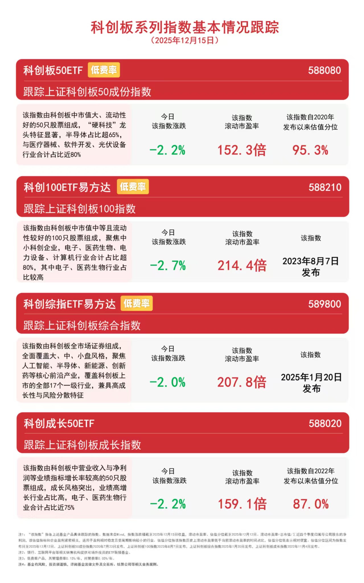 0今日泛科技方向表现弱势,半导体、CPO、新能源、创新药等板块集体调整。截至收盘,科创综指下跌2.0%,科创板50指数、科创成长指数均下跌2.2%,科创100指数下跌2.7%。Wind数据显示,科创板50ETF(588080)上周合计“ ...