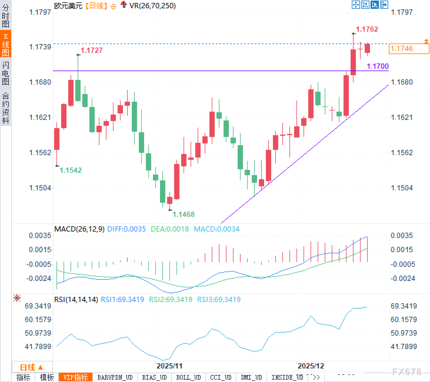 12月15日,星期一。欧元兑美元汇率在本周一欧洲交易时段延续了此前的反弹势头,交投1.1745附近,距离此前创下的多月高点1.1762仅一步之遥。市场的焦点正从美国货币政策的宽松预期,逐步转向欧洲央行可能调整政策立场的前景。 ![]() 值得特别关注的是,欧洲央行官员近期的公开表态明显释放出政策转向的信号。执行委员会成员施纳贝尔此前的讲话确认了市场的一个关键判断:欧洲央行的降息周期可能已经结束,下一步政策调整更有可能是加息而非降息。尽管欧洲央行管理委员会目前尚未明确将加息作为正式讨论议题,但从各项指标来看,本周四的会议大概率将对欧元区经济增长前景持乐观态度。欧洲央行行长拉加德上周的表态实际上已经暗示,央行将在本周的会议上上调经济增长预测。市场普遍预计,本周即将公布的采购经理人指数数据也将印证欧元区经济展现出的超预期韧性,从而进一步巩固欧洲央行的鹰派立场。 与此形成鲜明对比的是,大西洋彼岸的货币政策预期正在朝着相反的方向演进。市场目前普遍预期美联储将在2026年至少降息一次,而围绕美联储领导层更迭的讨论也在持续影响着美元的走势。上周五的报道显示,前美联储理事沃什被认为是接替现任主席鲍威尔的有力候选人,白宫经济学家哈塞特也被列入考虑名单。这一人事变动的可能性为美元前景增添了额外的不确定性因素。从利率差角度来看,欧美短期利率之间的差距正在快速收窄,这一结构性变化为欧元中期走势提供了重要支撑。与此同时,欧元区资产作为美元资产替代选择的吸引力正在逐步增强,资金配置的再平衡趋势也在为欧元提供持续的利好。 市场表现 欧元兑美元在过去三周累计上涨近2%,周一的价格走势则呈现出高位盘整的特征,整体维持在上周五的交易区间之内。从技术面观察,汇价在1.1700一线获得有效支撑,而1.1762的多月高点则构成近期的关键阻力位。日线图上的MACD指标显示多头动能仍在延续,DIFF值与DEA值均处于零轴上方,且柱状图持续为正,表明短期趋势依然偏多。RSI指标读数接近69,虽然尚未进入超买区域,但已经显示出一定程度的高位特征,这意味着汇价在进一步上行之前可能需要经历技术性的整理过程。 ![]() 当前欧元兑美元的走强反映了多重因素的共同作用。首先,欧美货币政策的分化预期是最核心的驱动力量。当欧洲央行官员明确暗示降息周期已经结束、下一步可能转向加息的同时,美联储的政策路径却面临着更多的降息压力,这种政策前景的背离直接推动了利差预期的变化,进而支撑欧元走强。其次,欧元区经济数据的持续改善为欧洲央行的鹰派立场提供了基本面支持。工业生产数据的超预期表现表明,尽管面临诸多挑战,欧元区经济仍展现出相当的韧性。第三,美联储领导层发生变动的预期在一定程度上削弱了美元的吸引力,尤其是考虑到市场对未来货币政策独立性的担忧。 展望后市 本周的多项关键事件将对欧元兑美元的短期走势产生重要影响。美国非农就业数据的表现将直接影响市场对美联储降息节奏的预期,若数据显示劳动力市场出现明显降温迹象,可能进一步强化美联储宽松的预期,从而对美元形成压力。欧洲央行的政策会议则是另一个关键节点,市场将密切关注拉加德在新闻发布会上对经济前景的评估以及对未来政策方向的措辞。若央行如预期般上调增长预测并维持鹰派论调,欧元可能获得进一步上行的动力。美联储官员威廉姆斯等人的讲话也值得关注,其言论可能为市场提供更多关于美国货币政策走向的线索。