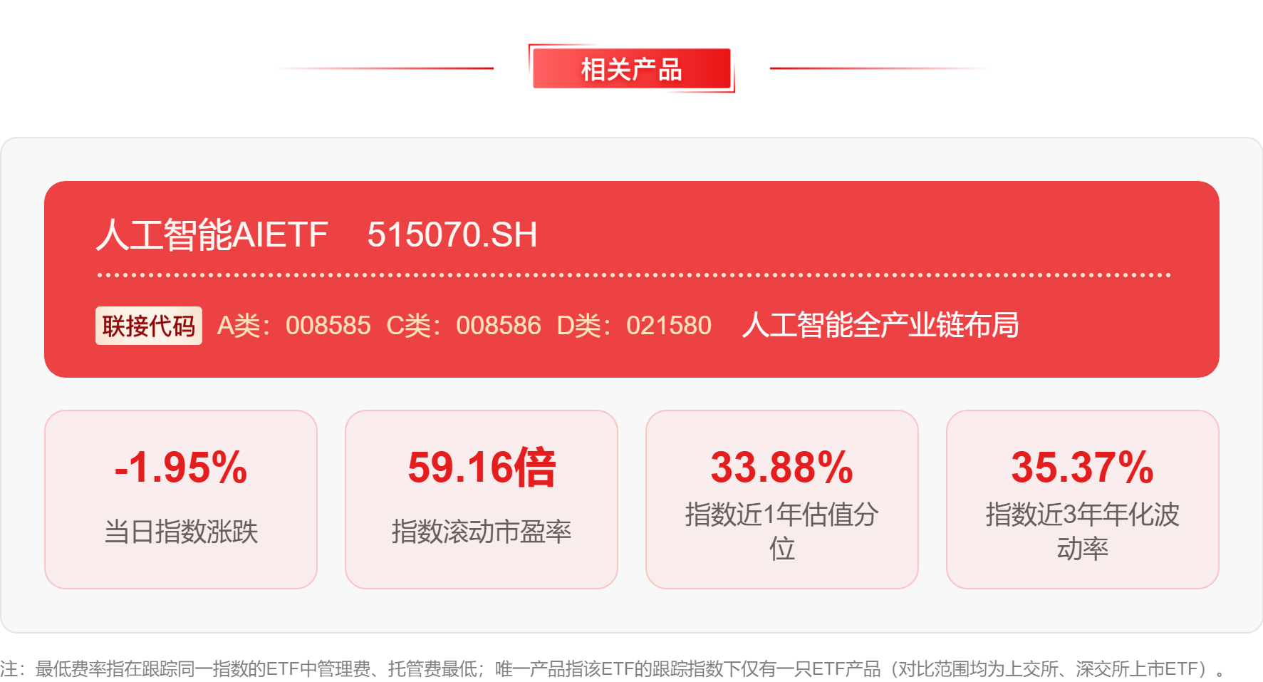 0今日,A股三大指数全线调整,上证指数跌0.87%,深证成指跌1.11%,创业板指跌1.28%。人工智能AIETF(515070)下跌1.6%,最新报价1.849元,盘中成交额已达0.5亿元,换手率0.41%。成分股方面涨跌互现,德赛西威领涨4.66 ...