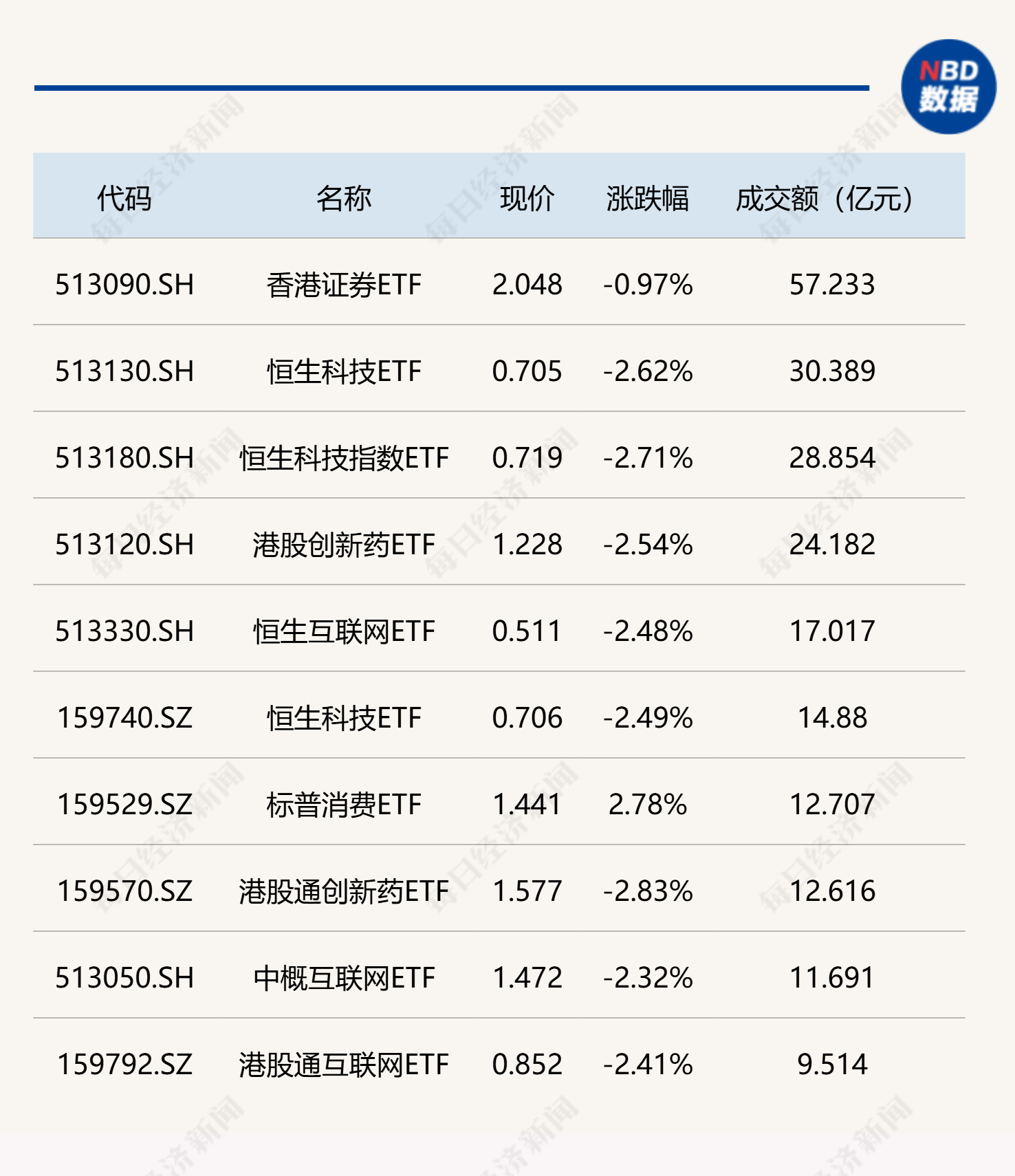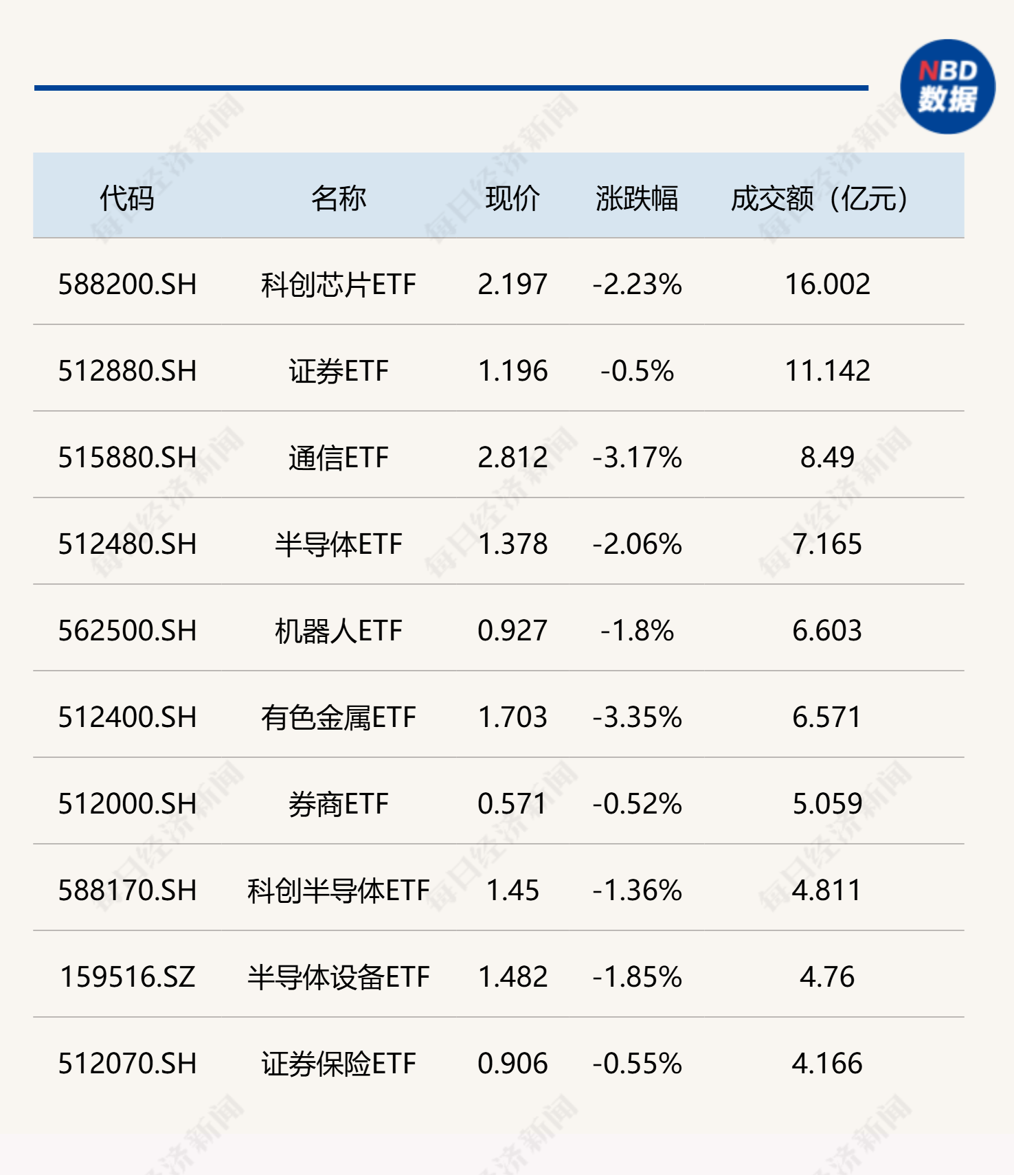每经记者|叶峰 每经编辑|彭水萍 市场早盘震荡调整,科创芯片和证券相关ETF交投活跃。科创芯片ETF半日成交额超16亿元。跨境ETF方面,香港证券ETF半日成交超57亿元。