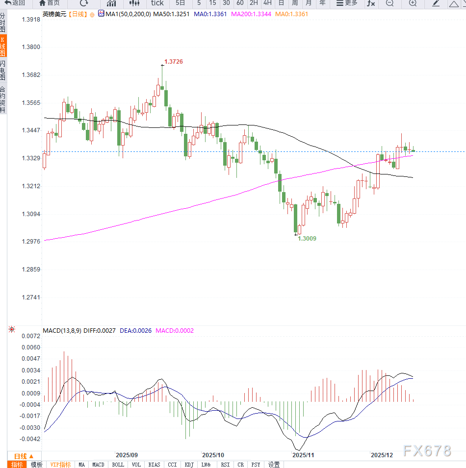 周二亚洲交易时段,英镑兑美元继续保持整理态势,价格基本持稳于1.3360附近。市场缺乏明确方向,主要反映出投资者在本周一系列重要宏观数据和央行事件风险来临前,选择暂时观望,避免提前押注。 ![]() 若就业和通胀数据继续显示经济放缓迹象,降息预期可能进一步巩固,从而对英镑形成压力。 与此同时,全球风险情绪略有降温,避险需求有所回升,令英镑在与美元的对比中表现相对偏弱。 不过,美元自身同样缺乏强劲的上行动力。随着市场对美联储未来仍可能继续降息的押注增加,美元指数徘徊在近两个月低位附近,限制了美元的反弹空间。 此外,关于未来美联储领导层政策取向的预期也在持续影响美元走势。市场普遍认为,新任偏鸽派立场可能强化宽松政策倾向,即便经济基本面表现尚可,也难以彻底扭转降息预期。 在这一背景下,美元维持弱势运行,为英镑兑美元提供了一定支撑,使汇价得以在关键技术位上方企稳。 整体而言,在英国央行与美国关键数据落地之前,英镑兑美元更可能维持震荡整理格局,等待新的基本面指引来打破当前平衡。 从技术形态来看,英镑兑美元目前处于中期震荡结构之中,价格在关键均线附近反复拉锯。近期回调过程中,汇价成功守住200日均线支撑,显示下方买盘仍具一定防守意愿,该均线所在的1.3350附近区域已成为短线多空博弈的核心位置。 只要汇价能够稳守1.3350上方,整体结构仍有利于维持震荡偏强整理,短期内不排除在数据刺激下出现技术性反弹。若该支撑被有效跌破,汇价可能重新回落至前期低位区域,届时下行风险将明显加大。 在上行方向,1.3400附近构成初步阻力,该区域是近期整理区间的上沿,同时也是短线空头重点防守的位置。若在利好数据或政策信号推动下突破该阻力,汇价有望进一步测试1.3450一线,从而改善短期技术前景。 不过,在基本面不确定性消除之前,上方空间仍可能受到限制。 总体来看,技术面显示英镑兑美元正处于方向选择前的蓄势阶段,200日均线的得失将成为判断短线走势的重要参考。 ![]() 当前英镑兑美元的横盘整理,本质上是英国央行降息预期与美联储宽松押注相互对冲的结果。英镑缺乏独立走强动能,而美元同样难以形成趋势性反弹。 在重磅数据与央行决议落地之前,汇价大概率维持区间震荡;真正的趋势方向,仍需等待政策信号更加明朗之后才能确认。