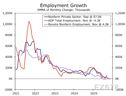12月16日周二,美国劳工统计局将发布因政府停摆延迟的11月就业数据,同步披露的还有10月就业报告中机构调查维度的核心指标——含非农就业人数(NFP)与平均时薪。 ![]() 若预期落地,美联储双重使命中的“充分就业”目标将进一步暴露风险敞口。 ![]() 12月16日核心数据看点 下一份美国就业报告将于12月16日发布,其特殊性在于涵盖10月、11月双月数据。10月数据将呈现“半完整”形态:当前就业统计调查(CES,即机构调查)数据正常披露(数据来源为企业端,虽不排除停摆衍生的小幅干扰),而当前人口调查(CPS,即家庭调查)数据因原始收集受阻暂不发布。 ![]() 机构调查在追溯补采数据方面具备天然优势,企业端完整的薪资记录可支撑数据还原;而家庭调查依赖个人对特定时段活动的记忆回溯,准确性与可追溯性相对较弱,这也是10月家庭调查数据缺位的核心原因。 10月就业数据:半份报告的参考价值 富国银行预测10月非农就业人数减少6万人,若成真将是2020年12月以来最大单月降幅,但该数据存在显著失真。 特朗普政府年初推出的联邦员工延迟辞职计划,使得大量参与者在9月底前仍保留薪资名额,计入机构调查就业人口;10月该部分员工集中退出名册,导致联邦就业数据出现一次性大幅下滑。 叠加政府招聘冻结影响,10月联邦就业人数预计减少12.5万人,单月降幅超今年以来累计的9.7万人。 ![]() 剔除联邦政府部分,10月私人部门就业预计新增6.5万人,略低于近三个月7.1万人的平均增速,反映私人领域招聘动能温和放缓。 11月数据:就业市场的完整校验 11月数据的核心价值在于时效性与完整性,将包含常规就业报告的全部核心指标,需重点关注数据收集的技术性偏差。 鲍威尔主席在12月10日FOMC会议后明确提示,43天的创纪录停摆可能导致11月家庭调查出现“技术性扭曲”——尽管2013年停摆后数据回应率仍处于正常区间,但此次停摆时长超此前数倍,可能在回应率、季节性调整等环节产生偏差。 富国银行预测11月非农就业新增4.5万人,进一步低于近三个月6.2万人、近六个月5.8万人的平均增速,就业疲软态势持续。 替代指标同步验证这一趋势:11月ADP私人就业减少3.2万人(小型企业裁员为主),Revelio总就业减少9000人;地区联储PMI调查显示服务业招聘仍处收缩区间。不过,零售、运输仓储领域的季节性招聘较去年小幅回暖,将为数据提供部分支撑。 ![]() 雇主端呈现“慎招聘、少裁员”的谨慎态势:非农调查参考期内首次申领失业金人数下降(见图4),11月挑战者裁员公告数较10月回落。 ![]() 劳动力需求增速略低于供给增速,推动失业率缓慢上行;11月世界大型企业联合会就业机会差异指数下滑,印证劳动力市场闲置产能扩大,预计11月失业率升至4.5%。 ![]() 薪资增长反映供需平衡的脆弱性:预计10月、11月平均时薪均环比增长0.3%(与近一年平均水平持平),但同比增幅将降至3.6%的周期低点,通胀压力进一步缓解。 综合来看,此次“双月数据洪流”将延续就业市场的核心趋势:就业增长温和正增长、失业率缓慢上行至4.5%。 需重点关注的是,4.5%的失业率已高于富国银行测算的4.0%充分就业水平,也超出FOMC中位数长期预期的4.2%,叠加职位空缺、劳动者信心等指标的同步弱化,充分就业目标已明确面临风险。 ![]() 总结: 多张就业前景相关图表剔除新冠疫情期间的大幅波动,观察下来,本次特殊的双月就业报告之前,美国劳动力市场在排除政府裁员一次性干扰后,增长动能仍在温和但明确地减弱。 失业率上升至敏感水平,薪资压力缓解,这为美联储在未来几个季度转向宽松货币政策提供了依据,市场需密切关注后续数据以确认这一趋势。 结合2026年通胀持续向2%目标收敛的预判,富国银行维持美联储明年上半年再实施两次25BP降息的交易预期。