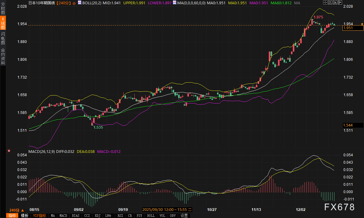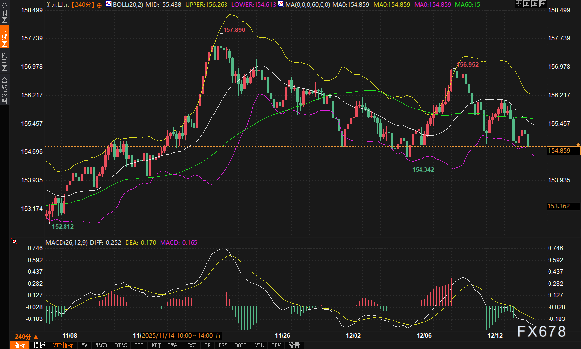 北京时间周二(12月16日),全球汇市与债市聚焦本周五的日本央行货币政策决议。截至当日盘中,美元兑日元报154.858,日内下跌0.22%;10年期日本国债收益率报1.951%,日内微跌0.15%。市场参与者在决议前保持谨慎,日债收益率与美元兑日元均处于关键技术区间,等待政策信号的明确指引。 ![]() 本周五的日本央行决议是本周市场核心事件,市场共识预期该行将加息25个基点至0.75%。在此背景下,日债收益率呈现区间博弈特征: 10年期日债:当前在1.951%附近徘徊,前高为1.976%,布林带(20,2)显示中轨1.941%、上轨1.991%、下轨1.891%,若突破上轨则可能测试2.00%心理关口,反之则看向1.90%及1.85%支撑。 技术指标方面,10年期日债MACD(26,12,9)显示DIFF 0.032、DEA 0.038,处于微弱多头区域,但动能不足,反映决议前的观望情绪。 ![]() 美元兑日元近期呈现下行趋势,日内跌破155.00心理关口。基本面与技术面形成双重压制: 政策分化:日本央行加息预期与美联储鸽派预期(2026年两次降息)形成利差收窄压力,支撑日元; 技术面:240分钟图布林带(20,2)显示中轨155.438、上轨156.263、下轨154.613,当前价格接近下轨;MACD指标DIFF -2.52、DEA -0.170,绿色动能柱持续,确认短期空头占优; 抑制因素:日本财政担忧(首相支出计划)在一定程度上限制日元涨幅,使得汇率暂时维持154-155区间。 关键支撑阻力与盘中关注点 决议前,关键点位的突破或失守将主导短期情绪: 美元兑日元:阻力位155.438(布林带中轨)、156.263(上轨);支撑位154.613(下轨)、154.342(近期低点)。 10年期日债收益率:阻力位1.976(前高)、1.991(上轨);支撑位1.941(中轨)、1.891(下轨)。 盘中需关注: 美国数据:当日延迟公布的10月非农就业报告、后续PMI及周四CPI数据,将影响美联储降息预期; 日本经济数据:制造业PMI收缩放缓、服务业PMI略有降温,虽未改变加息预期,但需留意对央行决议措辞的潜在影响; 市场情绪:避险情绪升温(亚洲股市承压)将支撑日元,反之则利空日元。 ![]() 本周五的日本央行决议将明确未来2-3天走势: 鹰派加息:若加息25个基点且措辞偏鹰,日债收益率突破阻力,日元升值,美元兑日元或跌破154关口; 不及预期:若维持利率或加息幅度不足,日债收益率回落,美元兑日元反弹至155上方; 美联储因素:美国数据强于预期将推迟降息预期,支撑美元;反之则利空美元。 决议前市场将保持震荡,决议后的政策信号是短期趋势的核心驱动。投资者需密切关注央行利率决定及声明中的通胀与经济展望表述,以捕捉后续市场动向。