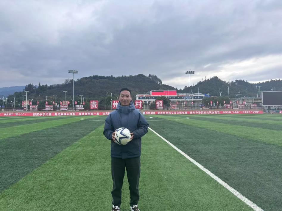 在球场边踢球的小孩。本文图片除特殊标注外均为 澎湃新闻记者 张成杰 摄 比数字更深刻的,是人心的转变。过去,榕江人羞于谈家乡,怕被说“穷”;如今,他们挺直腰杆说:“欢迎来我们榕江看球、吃粉、穿苗衣!”本地青年不再盲目外出,而是思考:“我能为家乡做些什么?”外地人也纷纷来此定居置业。 当流量涌入、赞誉纷至,榕江也面对着一道更深刻的考题:如何在加速发展中,稳稳接住那份让“村超”破圈的纯粹与自发。 足球打开了门,但门后的故事,才刚刚开始书写。 热爱 董永恒出生于榕江县忠诚镇——一个以牛瘪火锅闻名的小镇,距县城仅约十分钟车程,四周群山环抱。榕江县城与忠诚镇分别位于横贯东北至西南的万亩车江大坝两端。 这片由多条河流交织而成的冲积平原地势平坦、视野开阔,天然适宜开展群众性体育活动。拥有七八十年传统的榕江足球,正是在这里生根、发芽和生长。 董永恒成长于教师家庭,自小在学校操场打滚,乒乓球、篮球都曾涉猎,却对足球情有独钟。2002年中国国家队闯进世界杯,全民狂欢的浪潮席卷榕江。家电门店的电视机集体直播赛事,街头巷尾挤满看球的人群。这些场景让董永恒对足球的兴趣升华为热爱。 彼时的榕江,县城仅有县一中和县二小这两个球场,它们承载着无数少年的足球梦。放学铃声一响,四周是水泥地的下陷篮球场就会变身“迷你足球场”。四人一组,十几组轮流上场。没有专业裁判,摔倒了只需一个手势,所有人都会自觉停赛。装备更是简陋,磨平鞋底的胶钉鞋、班级团购的球衣,就是少年们逐梦的“战衣”。他们模仿着卡卡、罗纳尔多的动作,在奔跑中享受纯粹的快乐。 这种全民参与的足球氛围,贯穿了董永恒的学生时代。初中时,班级间的足球赛无需老师组织,同学们自发组队、自行筹备。上榕江一中(当时兼有初高中部)后,董永恒已能带队挑战高中生,“有时还得让他们球”。 2009年,他考入贵州民族大学,本以为足球将渐行渐远,又因榕江师兄的邀约加入校队。起初,他因“野路子”踢法和体能短板被教练冷落,整整一年“坐穿”替补席。但他坚持出席训练,课后琢磨战术,通过一场场“野球”积累实战经验。他逐渐理解到:真正的足球不止于脚法,更在于对比赛的阅读与团队的协作。大二起,他跻身主力。大四时,他随队夺得特步中国大学生足球联赛贵州赛区冠军,并代表全省闯入南大区赛——这是他“村超”之前职业生涯的高光时刻。 毕业后的董永恒,换过几份工作,从典当行职员到接手姑妈的卷粉摊,生活忙碌却从未放下足球。大学时他就已入选公益性的榕江县队,队员们凭着家乡情结和足球热爱聚在一起,外出参赛只求保障基本吃住行,即使毫无报酬也沉浸其中。