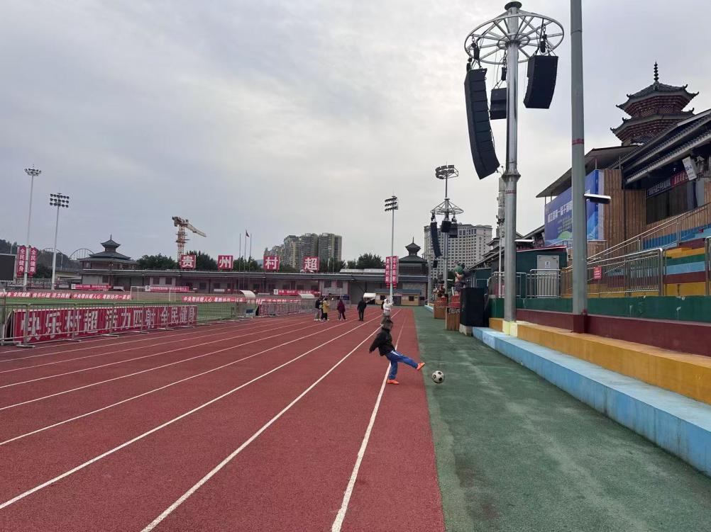 海报设计:祝碧晨 傍晚六点,夕阳把贵州榕江县古州镇第四小学的足球场染成金红色。董永恒站在球场边,吹响哨子,十几个七八岁的孩子从四面八方聚拢过来,球鞋踩在草皮上发出窸窣声响。 “今天练传球,记住眼睛要看人,脚要贴地。”36岁的董永恒蹲下身,手掌贴着地面比划出一道弧线。他穿着简单的运动服,干练、精神。上次比赛后,他右膝半月板积液还未完全消退,走路时仍会不自觉地放轻脚步,但示范动作却一丝不苟。 孩子们开始两两一组练习。一个小男孩用力过猛,球高高飞出场外,砸在围栏上,弹进绿化带。董永恒没说话,小跑过去捡起来,顺手拂去球上的草屑,再轻轻放在孩子脚边,摸了摸他的头:“没关系,再来。踢球不怕错,怕的是不敢踢。” 三年前,董永恒还是清晨四点就起身备料的卷粉店摊主,每天起早贪黑谋生,抽空挤时间才能踢“野球”。如今,他已是被卡卡、范志毅等点赞“认证”的“董球王”,更是躬身青训一线的启蒙者。他的生活变化,恰是榕江生机的注脚。
