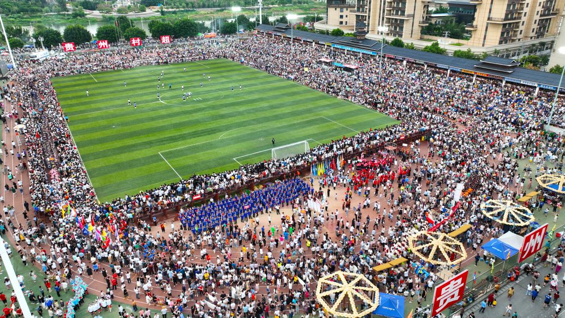2023年6月,“村超”现场。 榕江县委宣传部供图 生机 “村超”的故事,终究只是榕江叙事的起点。当热潮退去、镜头移开,这座黔东南的小城一切照旧,它因足球而被看见,却不能仅靠足球而生存。 榕江究竟是“被‘村超’改变”,还是“借‘村超’被看见”?这个问题背后,是外界对这座小城命运的关切与审视。人们担心,“村超”的光环可能遮蔽了它作为国家乡村振兴重点帮扶县的现实:过去这里曾是贵州贫困发生率较高的地区之一,产业基础薄弱,青壮年外流严重。“村超”带来的游客潮高度集中于赛事季,淡季时部分商铺门可罗雀。“村超”流量如何沉淀、公共服务如何跟上,都是现实的挑战。 2024年11月在清华大学演讲时,榕江县委书记徐勃给出了作为地方主政者的思考:“‘村超’不仅仅是一个足球赛事,而是真正意义上的一种乡村振兴的重要探索,通过一场活动有效带动产业发展的一次尝试。”他说,“村超”给了如何实现乡村振兴、促进区域经济发展的“一把钥匙”。 榕江县委县政府阐释了“村超”之后的发展方向:“长红”的根本在于一二三产的全方位融合。“村超”不能停留在赛事和浅层文旅消费层面,而应成为带动县域经济发展的新质生产力引擎——用好“村超品牌”,做好“招商选资”,选择符合榕江发展、具有带动力的优质企业深入合作,推动产业升级。 当地人意识到,“村超”的价值远不止于球场上的胜负。其真正的爆发力,源于地方美食大赏、苗侗民族文化展演与非遗技艺的有机融合。因此,未来的“村超舞台”不应局限于绿茵场,而应扩展至全城、全县,将整个榕江打造为一个“全世界共享的超级秀场”——在这里,各地文化可同台展示,各类群体能各得其所,流量得以沉淀为“留量”,关注转化为可持续的发展动能。 值得关注的是,榕江县委县政府把握住了“村超”运行中的深层机制:“村超”品牌收益的51%反哺全县250个村的集体经济,49%用于支持乡村体育公益事业,覆盖球队、啦啦队及青少年训练。这背后是“全民参与、全民受益”的核心逻辑,让发展的红利真正渗透至基层。 在这幅发展图景背后,榕江的生机,正藏在普通人的日常行为里:洪水刚退,八天就重铺好球场草皮;临时安置点旁,熊竹青又支起了她的水果摊……